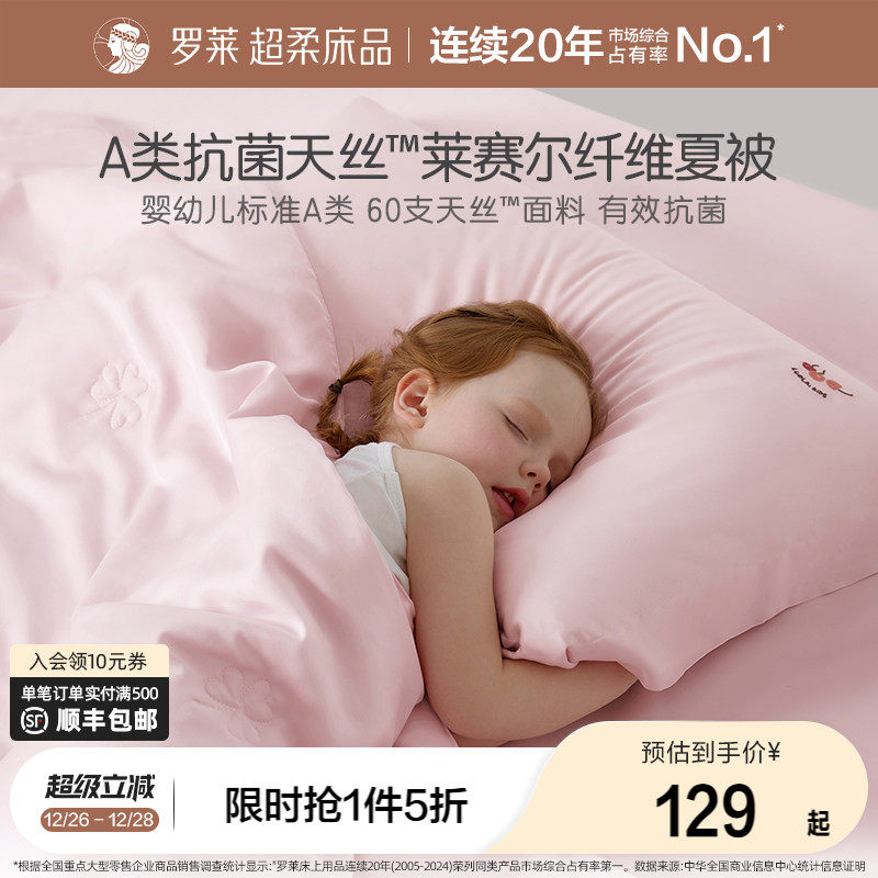 罗莱家纺儿童新品夏凉被学生宿舍A类抗菌进口兰精天丝纤维夏被