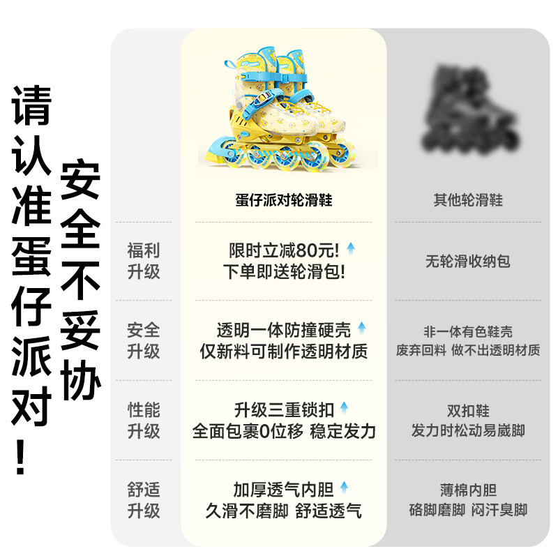 蛋仔派对轮滑鞋女童滑轮鞋儿童溜冰鞋6-12岁男童旱冰全套装初学者