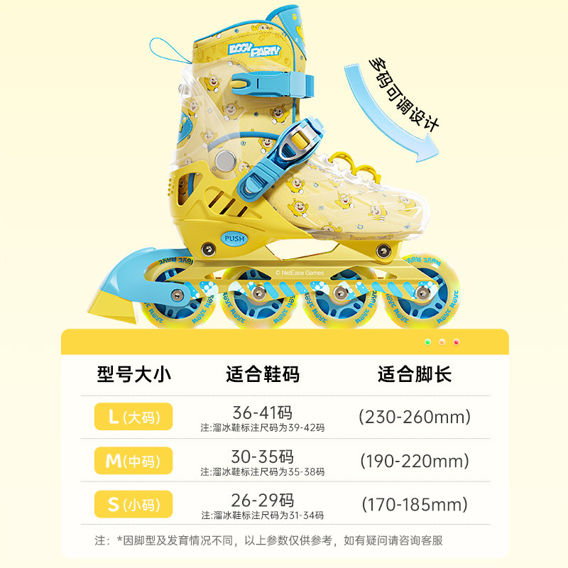 美乐蒂儿童溜冰鞋女童轮滑鞋女孩3岁6到12岁初学者旱冰可调节大小