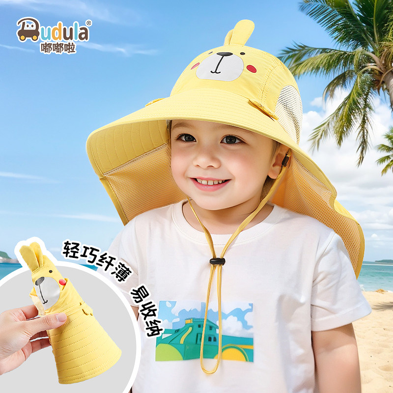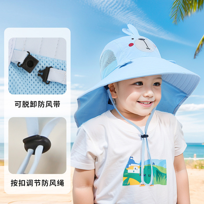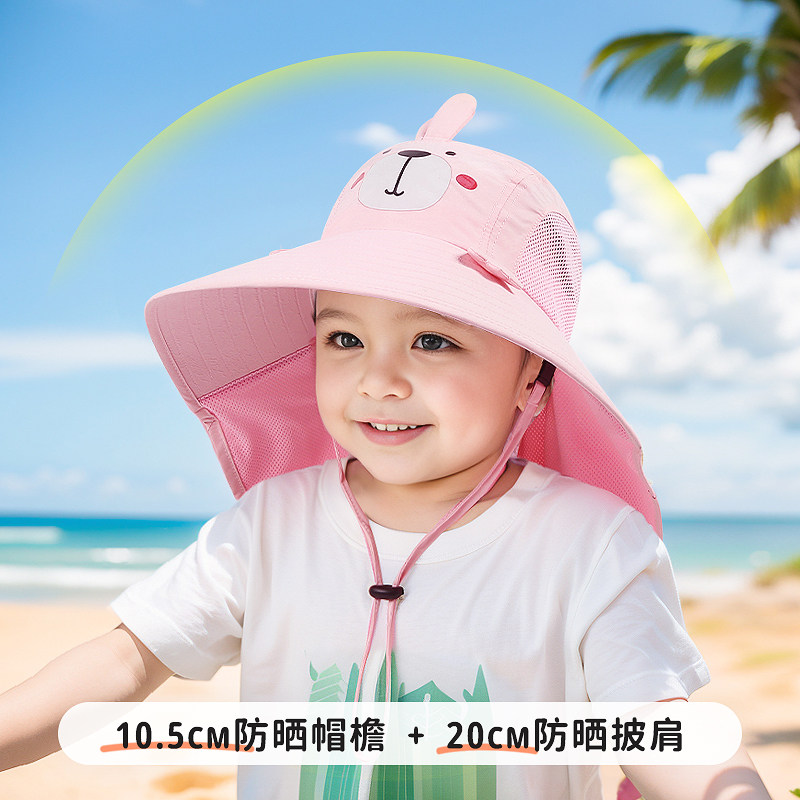 儿童防晒帽宝宝遮阳帽防紫外线男孩女童太阳帽大帽檐夏季渔夫帽子