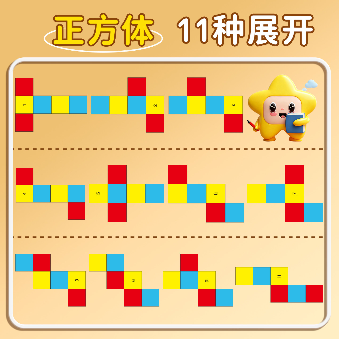 正方体展开图折叠纸11种展开图长方体54种折展开图小学数学五年级正方体和长方体框架模型棱长与表面积演示器