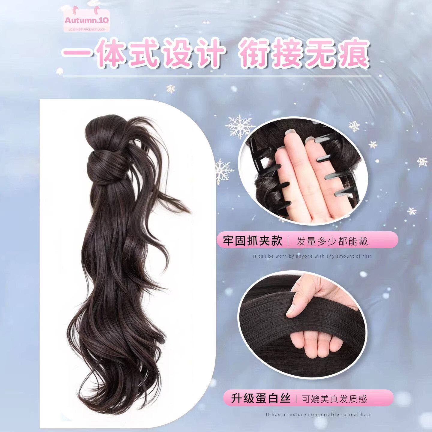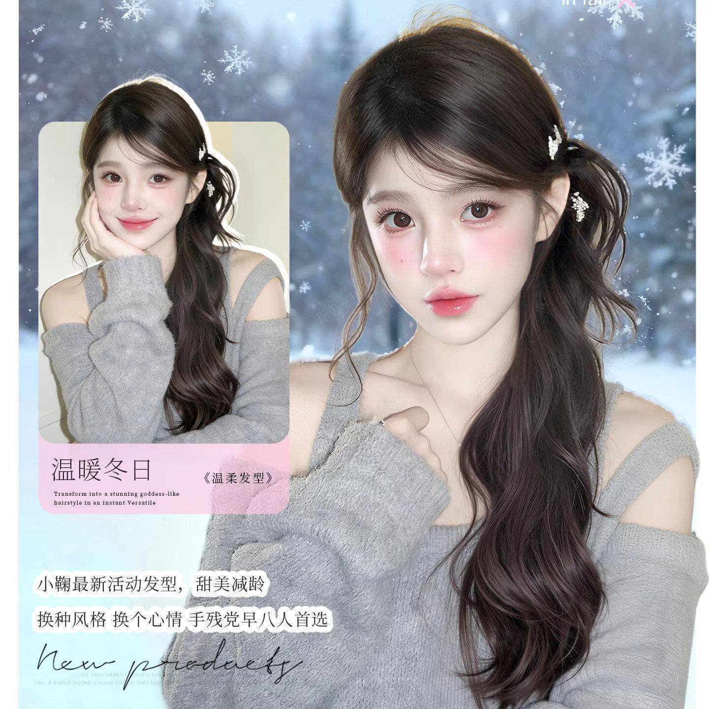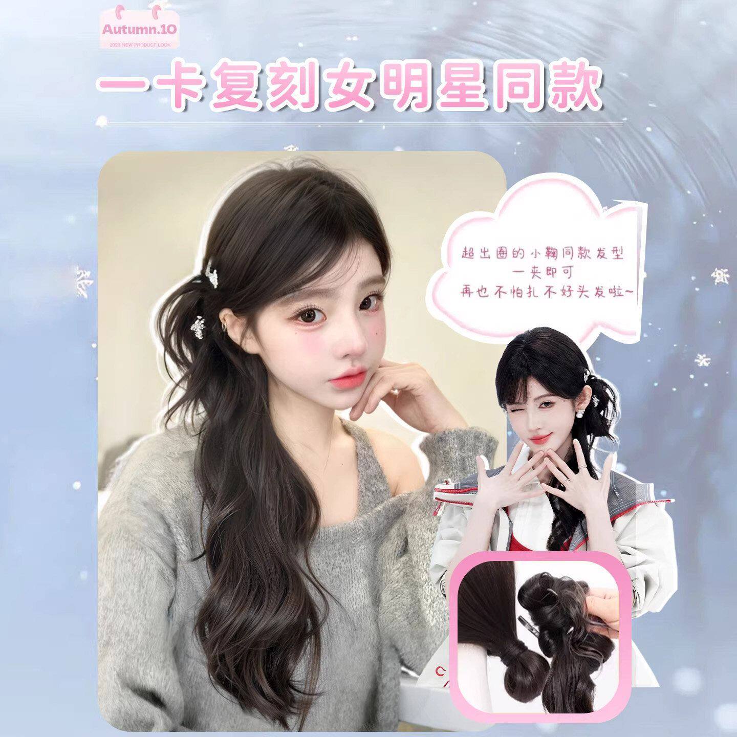 龙须卷马尾假发女国风增发量小鞠同款侧扎花苞头长卷发仿真假辫子