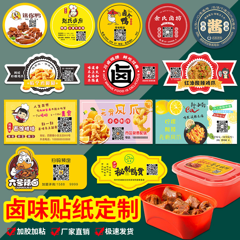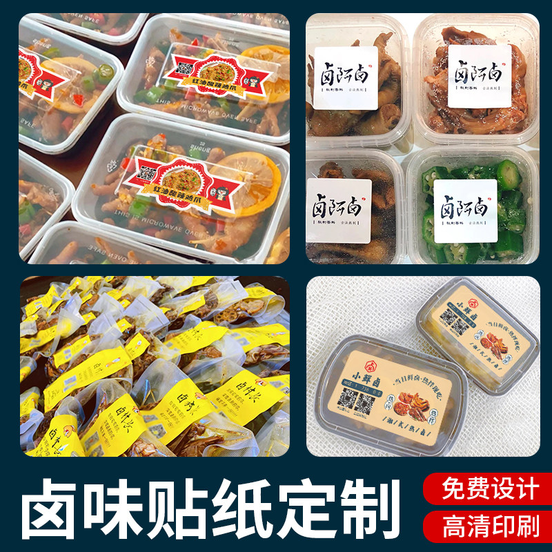 无骨鸡爪打包盒贴纸定制辣卤柠檬鸡爪logo卤鸭脖外卖贴猪蹄食品商标贴纸设计麻辣鸭货卤味广告不干胶贴纸定制