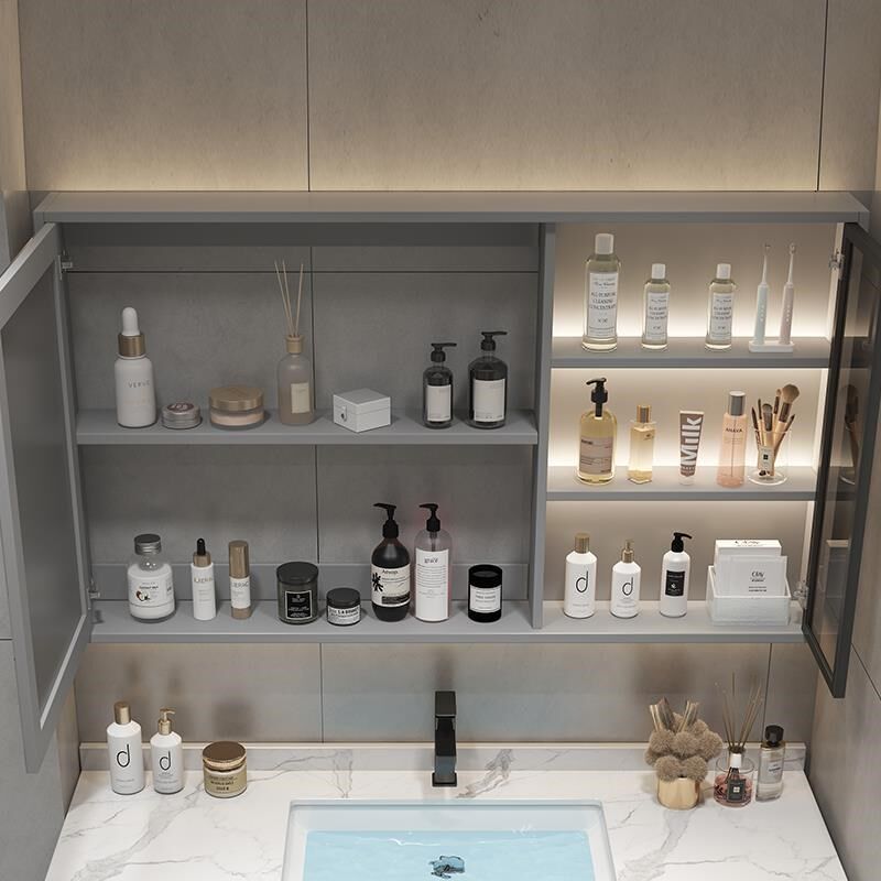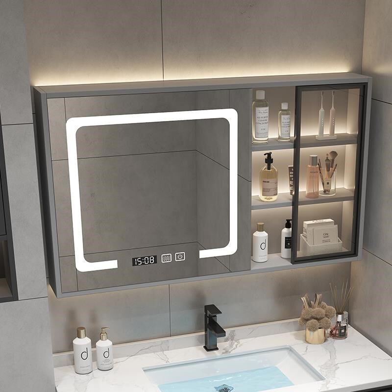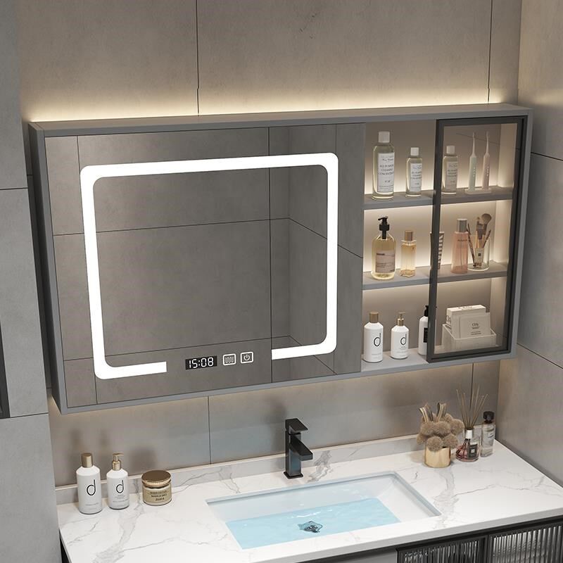智能浴室镜柜实木单独挂墙式卫生间镜子玻璃门层板灯除雾镜箱
