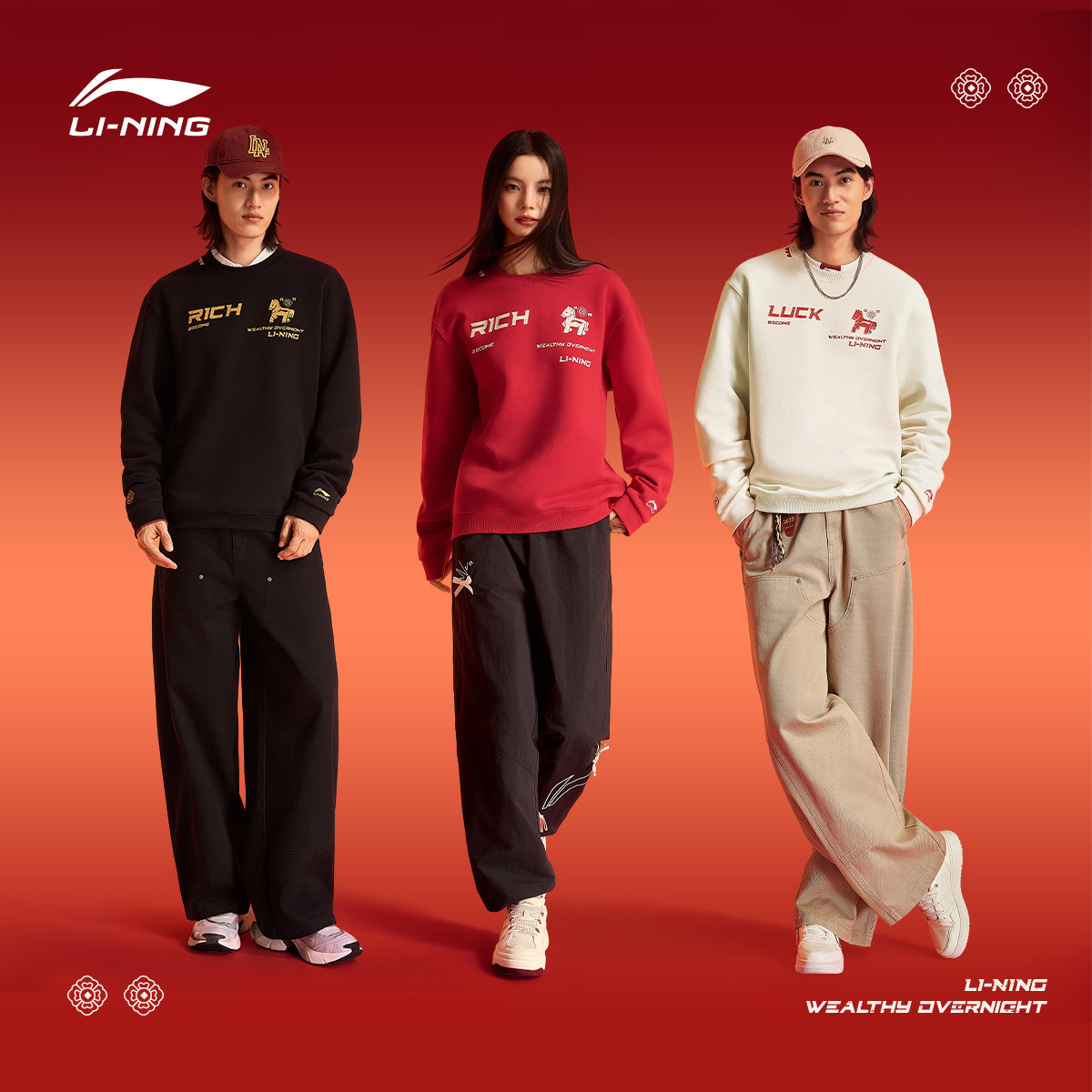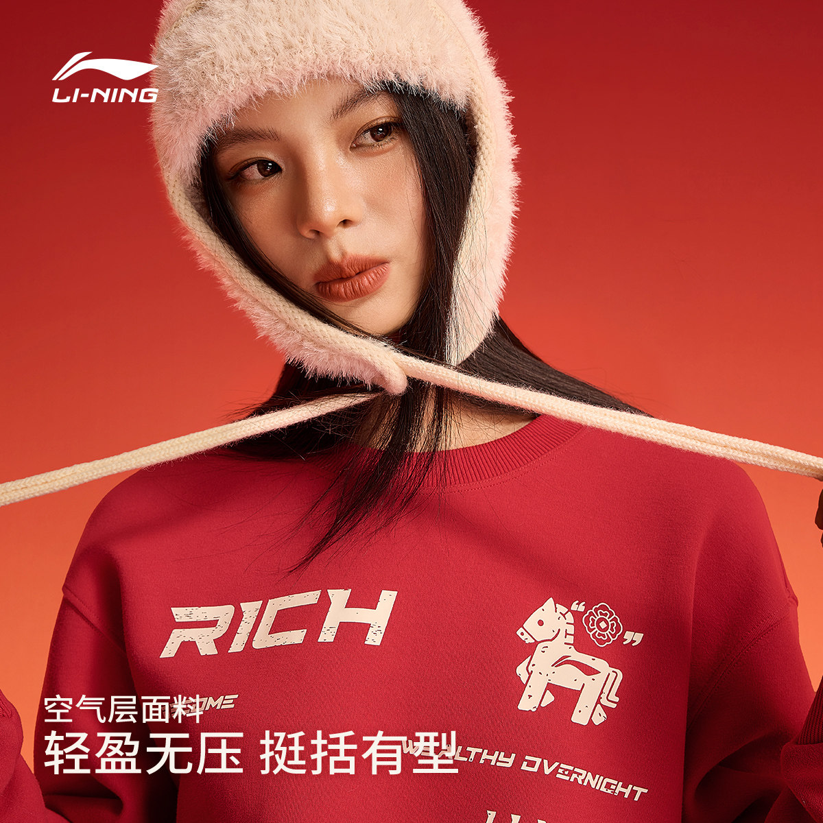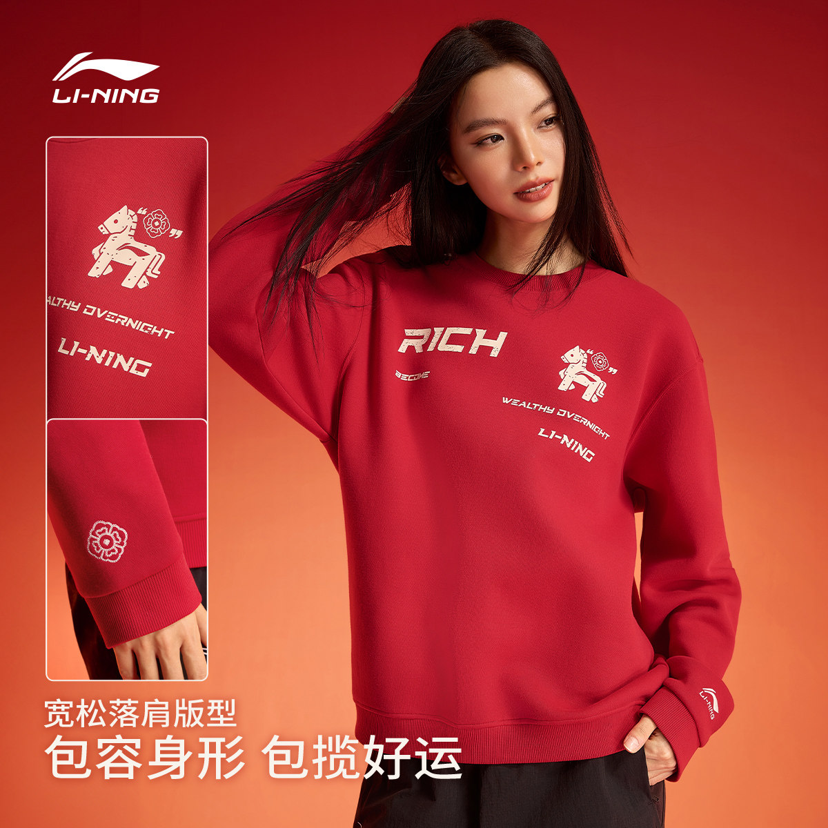 李宁运动服 新年限定「马上有钱」 男女同款休闲宽松套头无帽卫衣