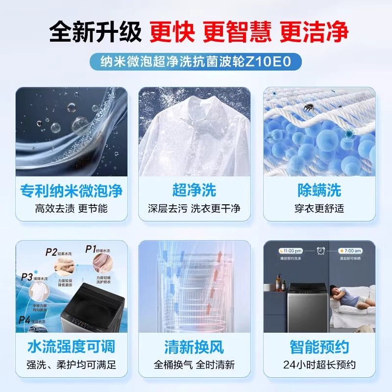 【25年新款】海尔洗衣机波轮纳米微泡全自动10公斤除菌螨Z10E0
