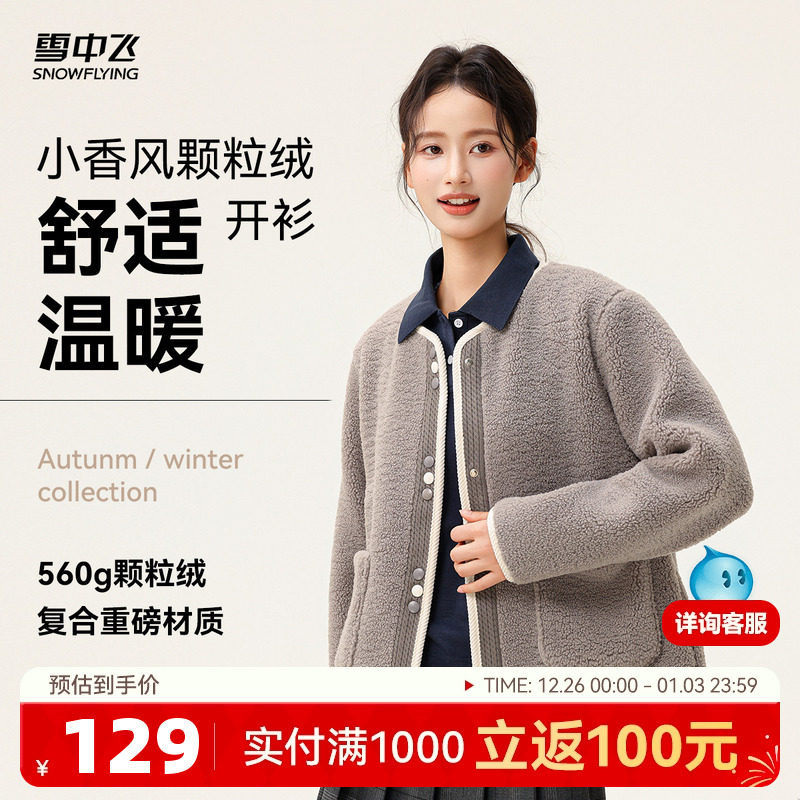 雪中飞2025秋新款女士短款颗粒绒外套小香风圆领软糯舒适休闲