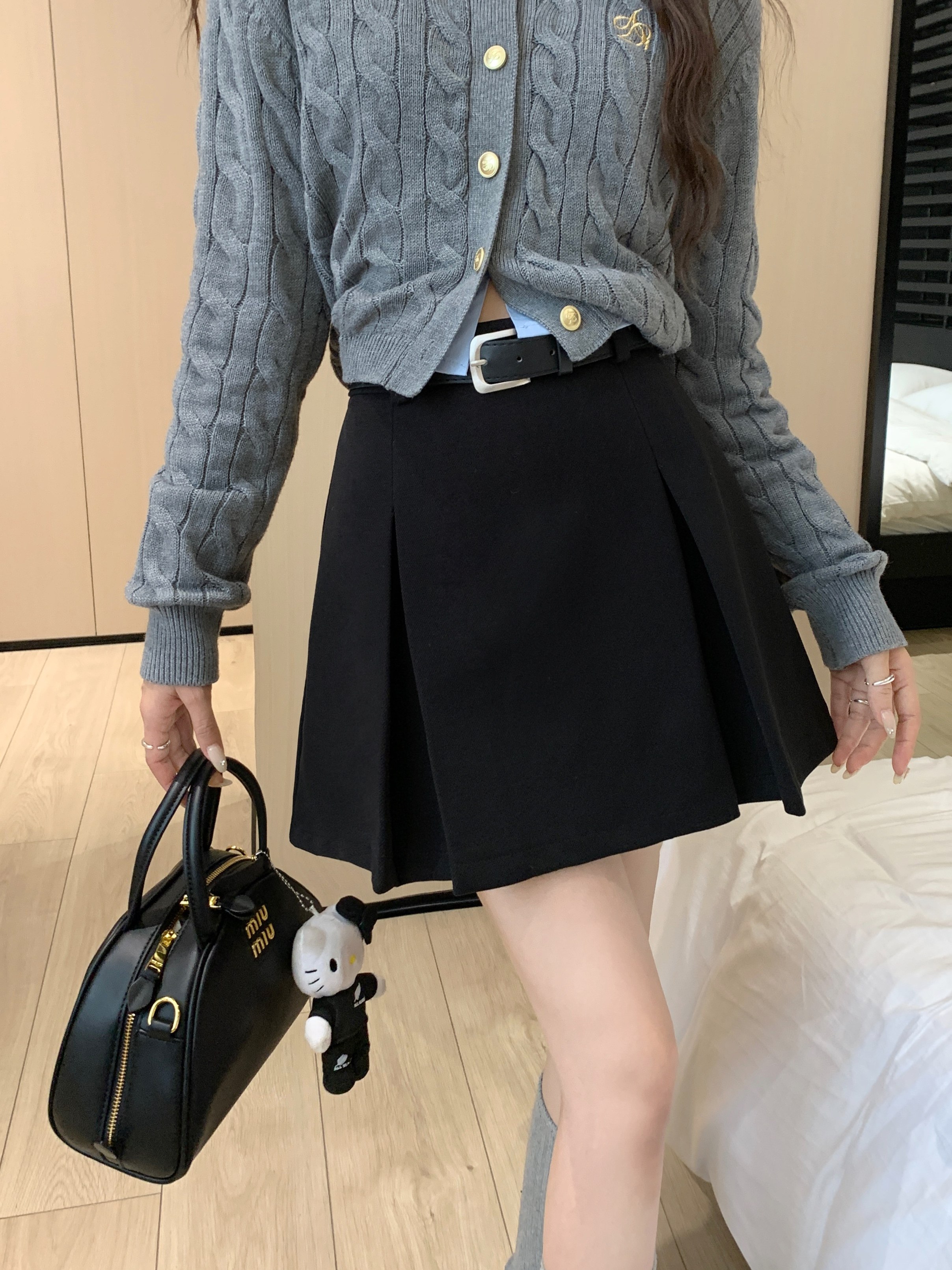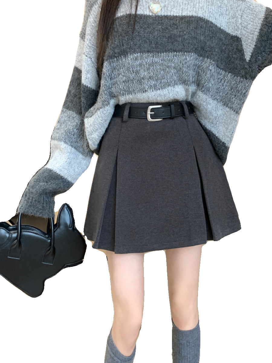 灰色毛呢半身裙秋冬大码设计感a字短裙高腰咖色小个子包臀百褶裙