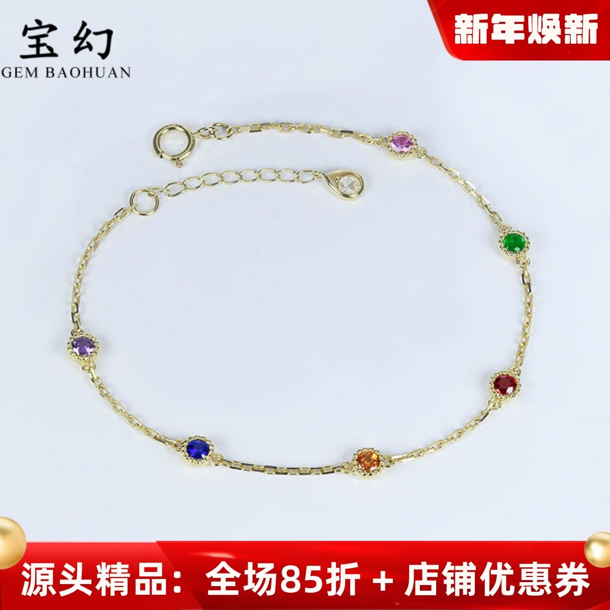 18K黄金天然彩宝钻石彩虹手链 多彩红宝石蓝宝石祖母绿彩色渐变女