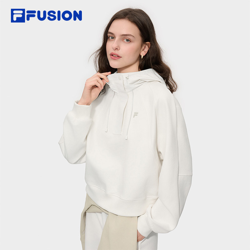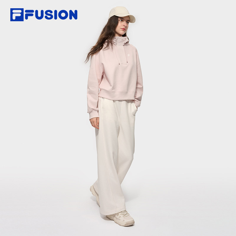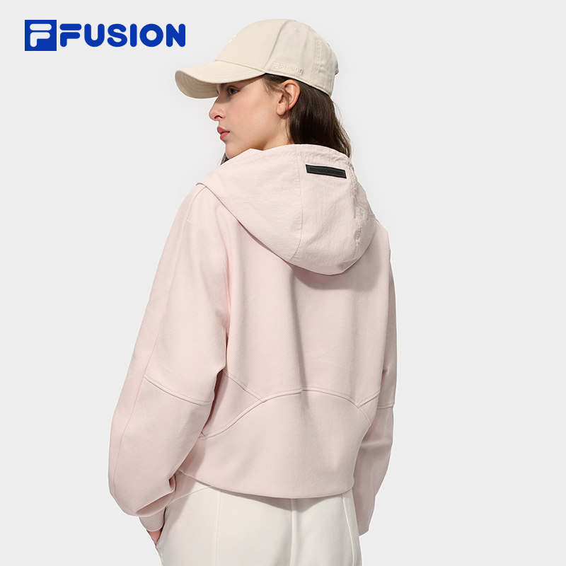 FILA FUSION斐乐潮牌女子连帽卫衣2025冬季新款保暖运动针织上衣