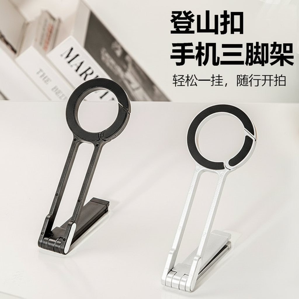 登山扣磁吸手机支架环形合金手机架可调节折叠便携户外登山扣拍摄三角架飞机自拍杆拍照手柄旅游神器
