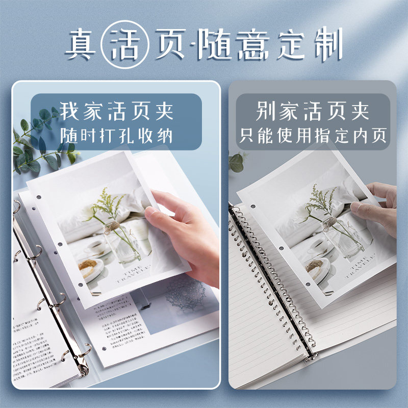 【送打孔器】a4纸四孔活页夹外壳装订成册工具厚书装订夹条神器活页纸张文件资料透明塑料书本封面打孔活页本