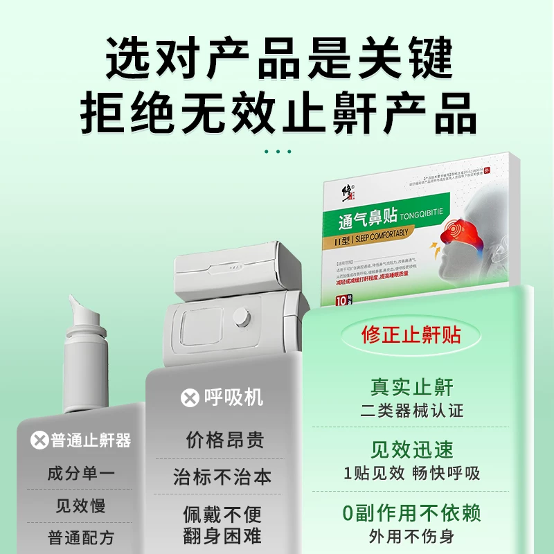 修正止鼾贴防止打鼾神器呼噜消男女士睡觉鼾立停通气鼻贴防打呼噜