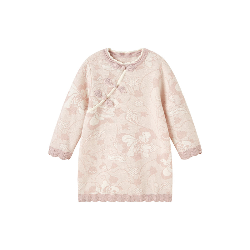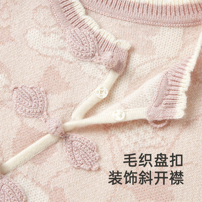 YOUGE幼歌 婴幼儿新中式红色年服甜美乖巧小翻领国风毛衣连衣裙潮