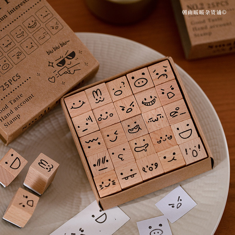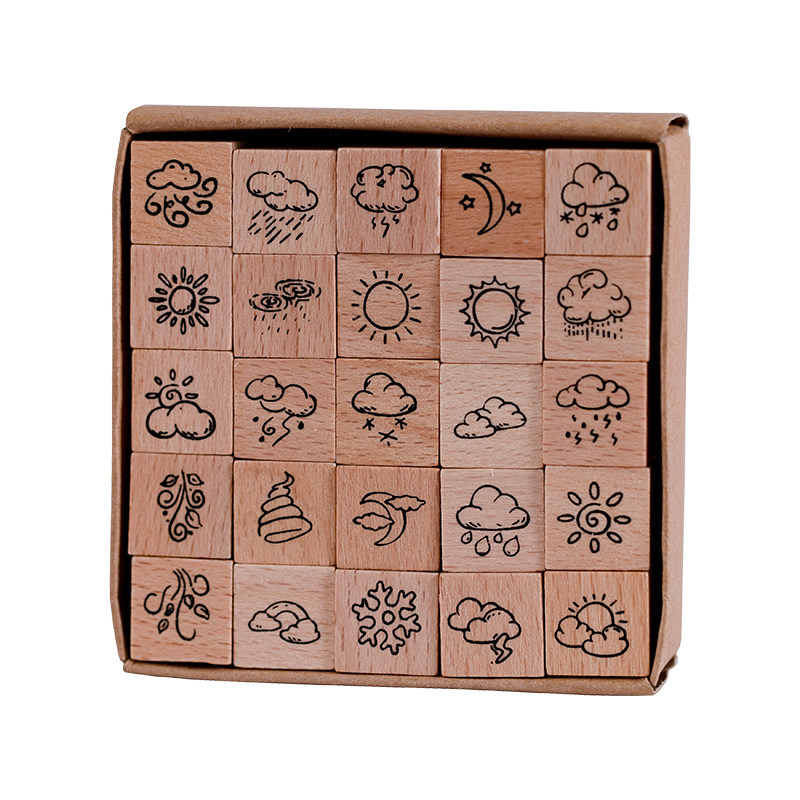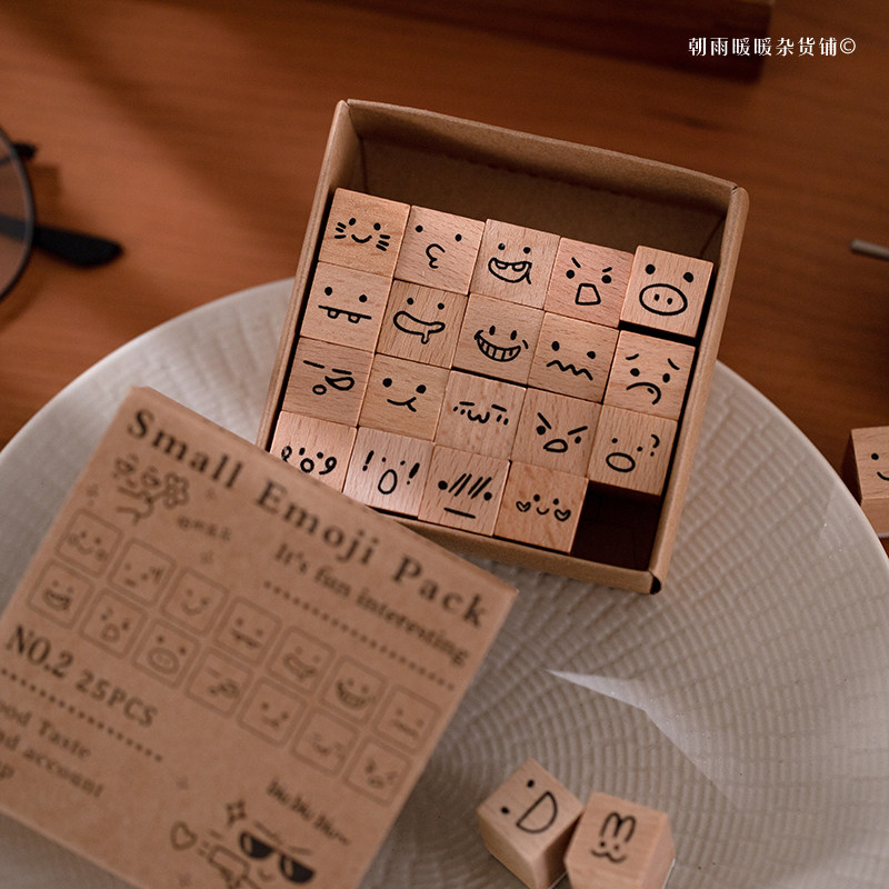 朝雨 25枚迷你手帐印章套装儿童可爱天气表情包日期打卡diy装饰
