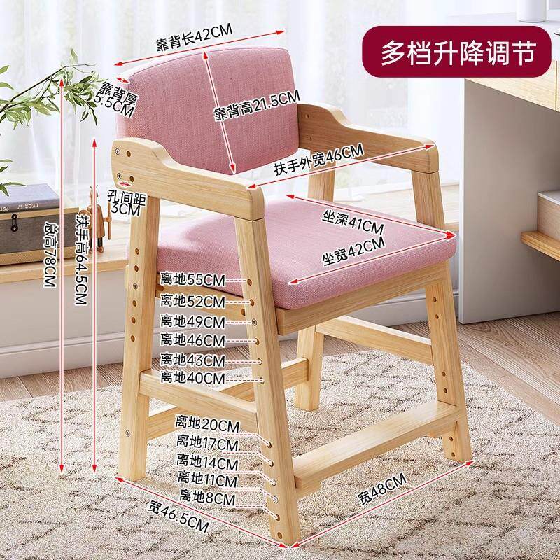 实木椅子凳子靠背餐椅家用卧室书房网红书桌椅儿童可升降学习椅子