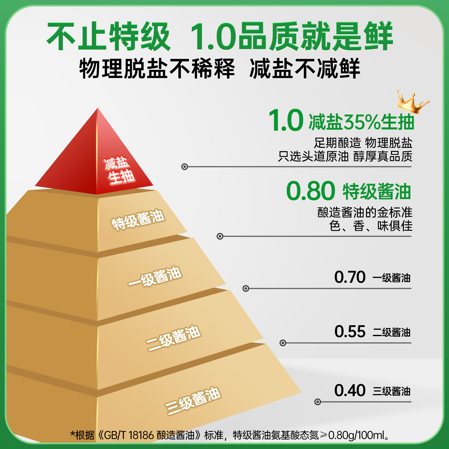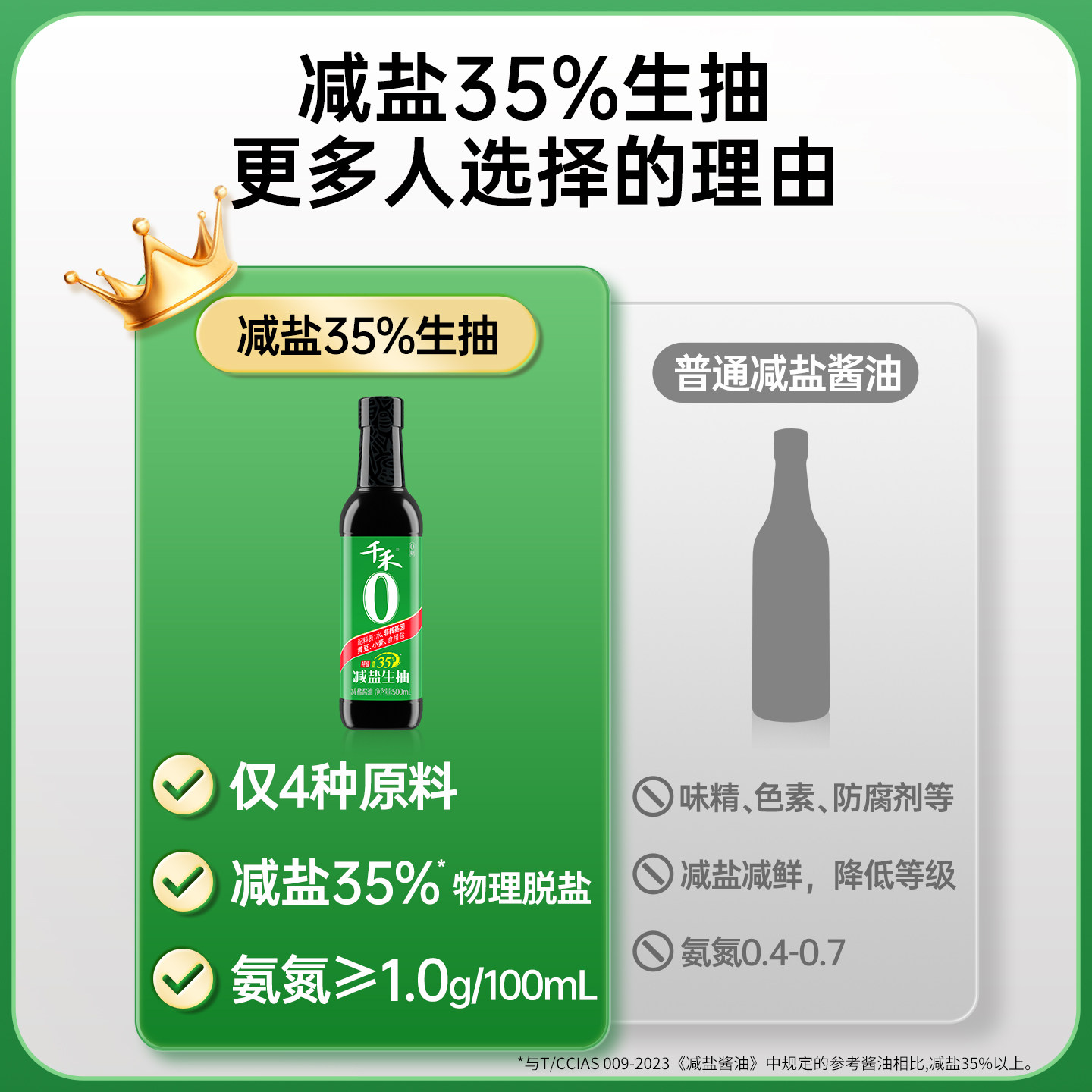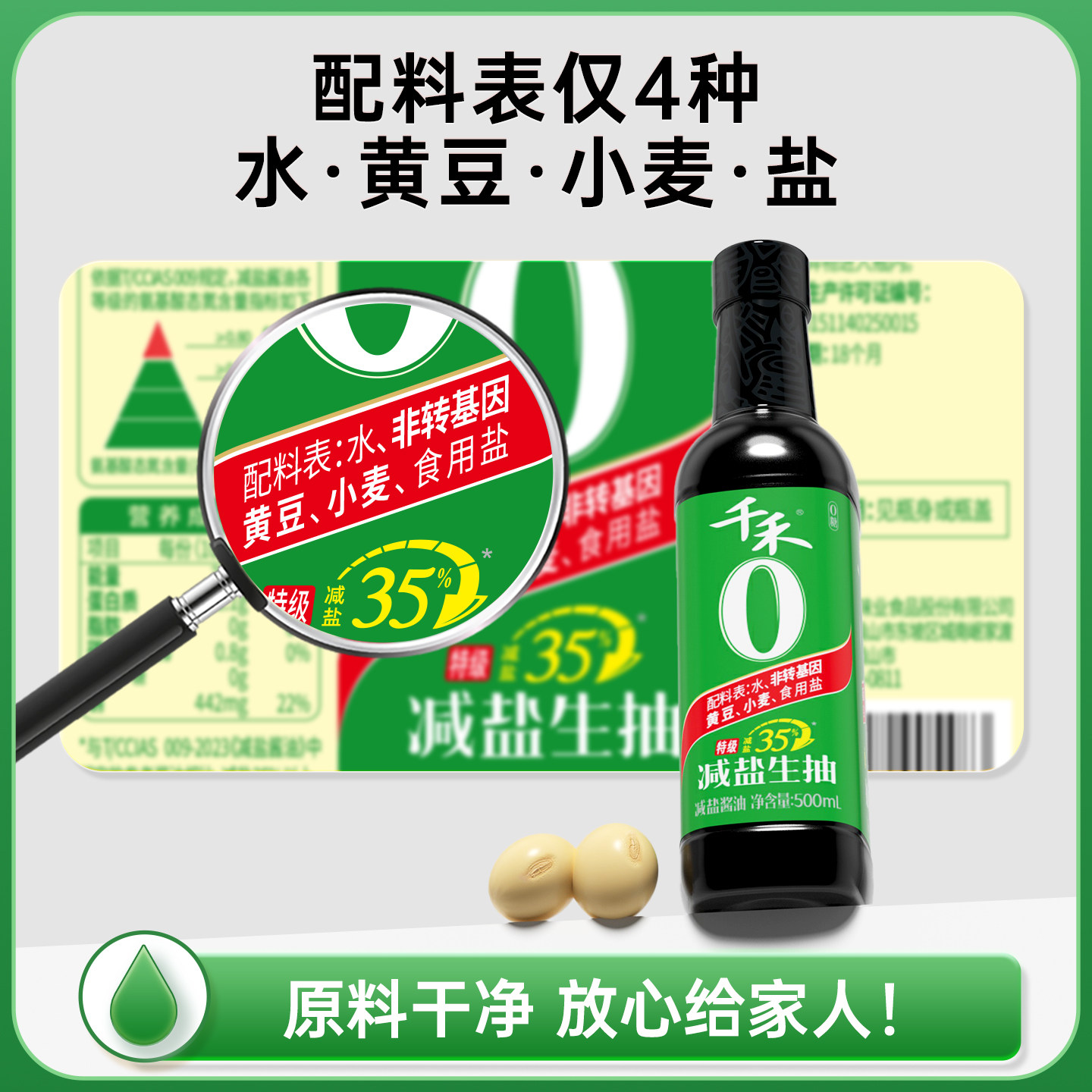 千禾生抽零添加35%特级酱油500ml家用酿造黄豆味精减盐头道食用