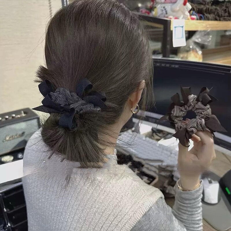 韩系小众编织蝴蝶结大肠发圈女款显发量丸子头发绳高级感马尾头绳
