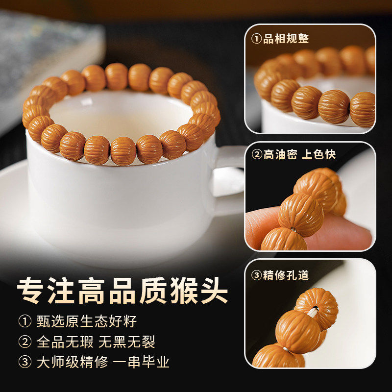911土豪猴头手串高端男女凤羽盘玩文玩佛珠手链手玩精品包浆原皮