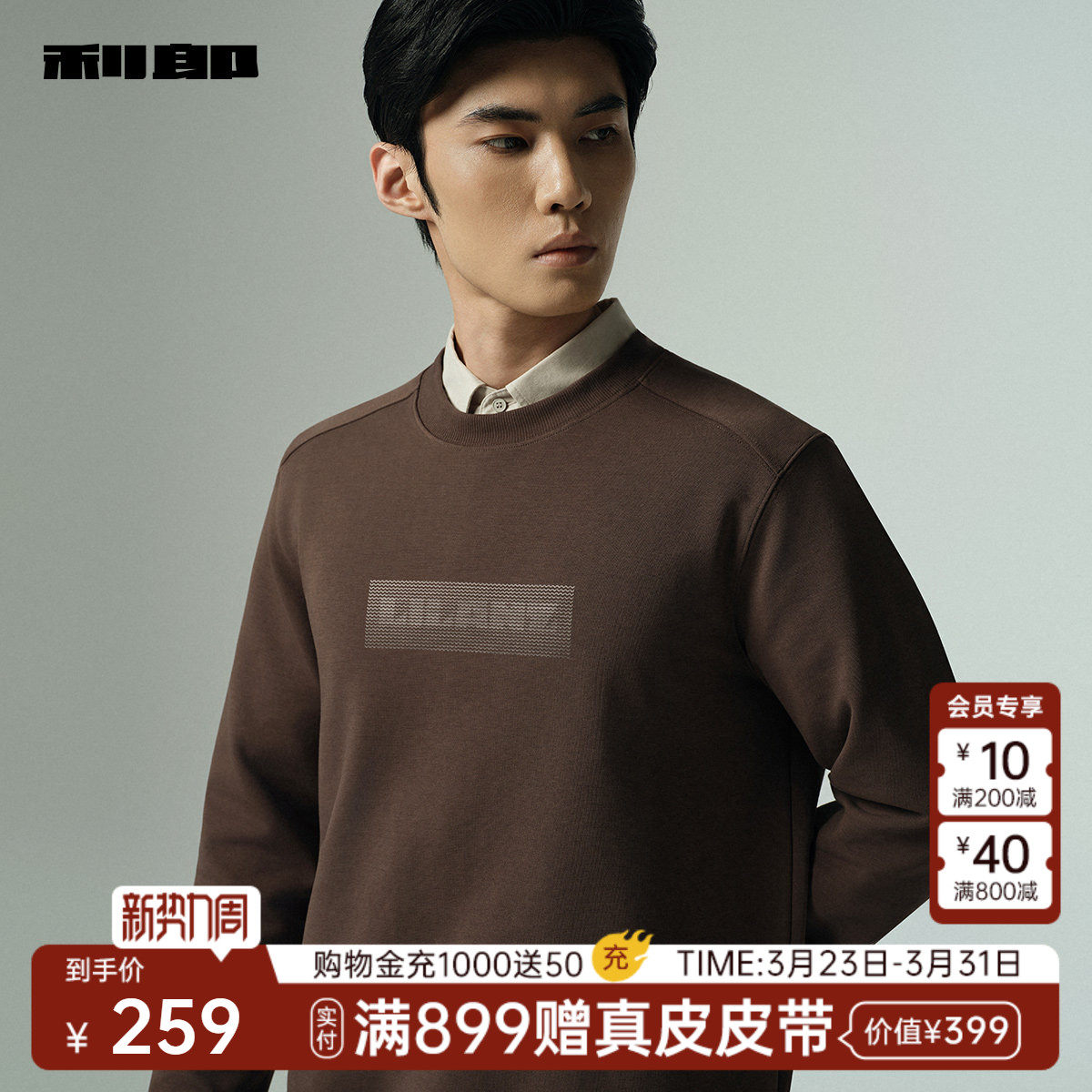 【宽松版】利郎官方 长袖卫衣男士春秋款新款休闲圆领T恤男装