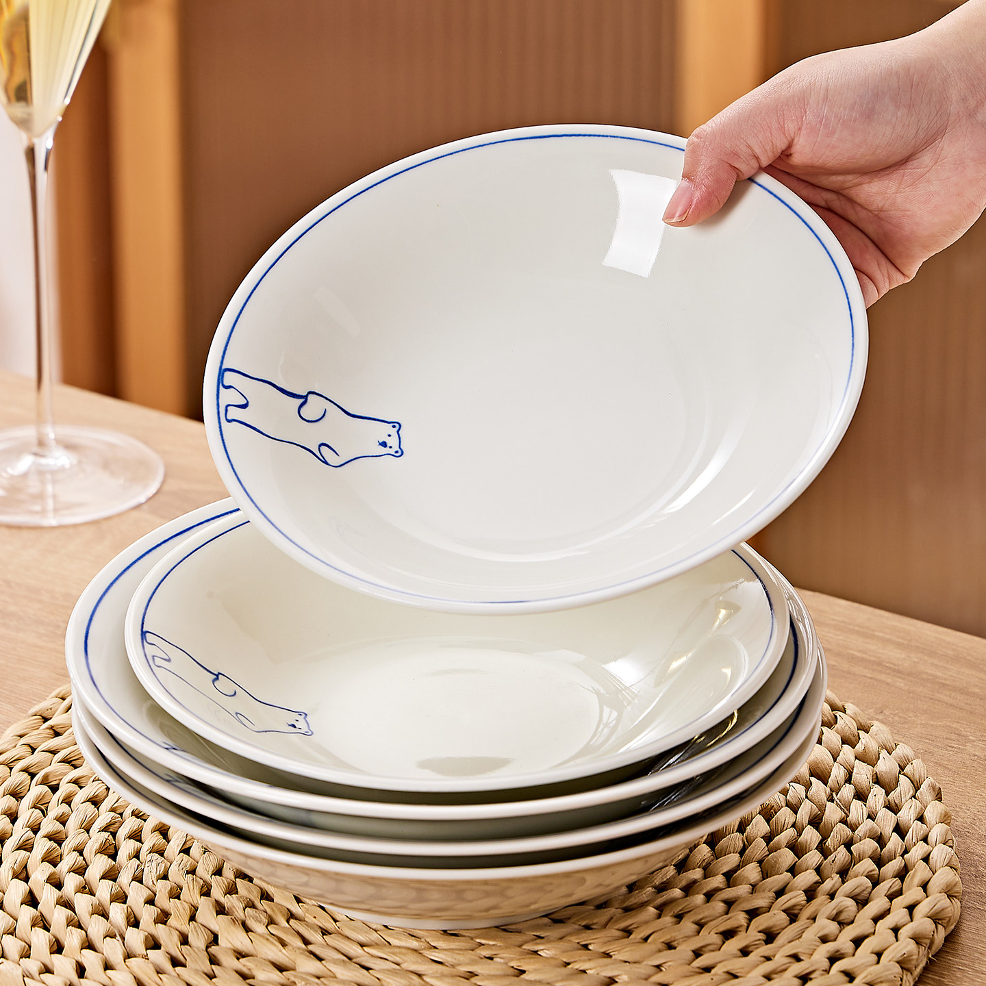 奶油风陶瓷碗家用卡通菜盘子可爱米饭碗汤碗釉下彩儿童餐具耐高温