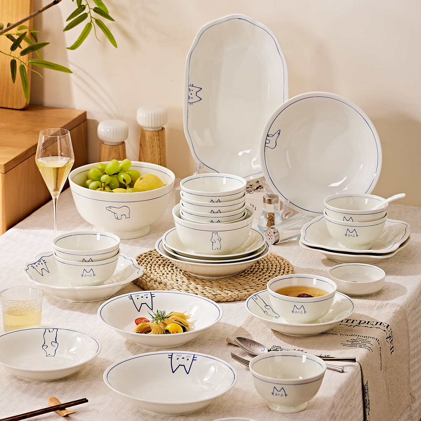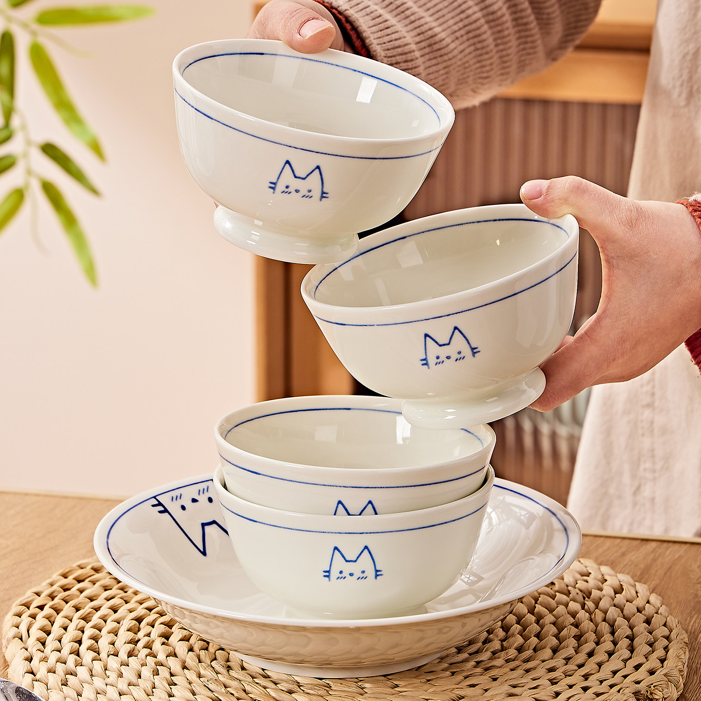 陶瓷碗家用2026新款高颜值餐具套装可爱饭碗碗盘碗碟具釉下彩碗筷