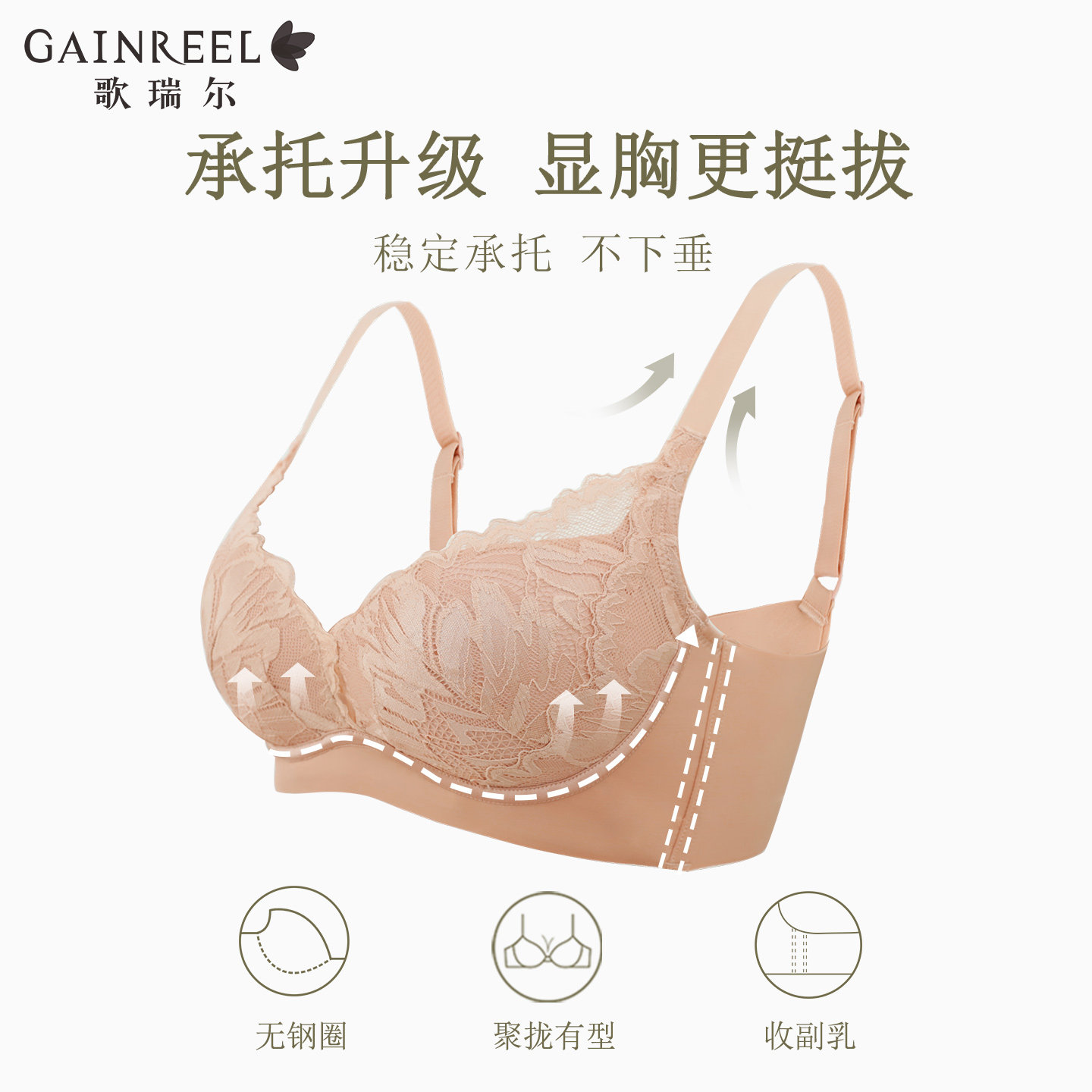 聚拢调整型歌瑞尔新款蕾丝内衣女无钢圈防下垂侧收副乳透气文胸罩