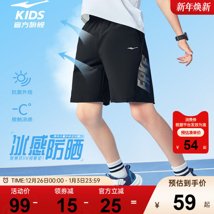 鸿星尔克童装儿童运动裤男童休闲短裤夏季五分裤中大童针织裤子