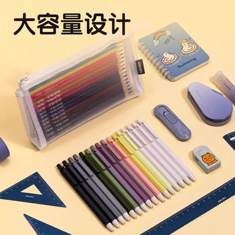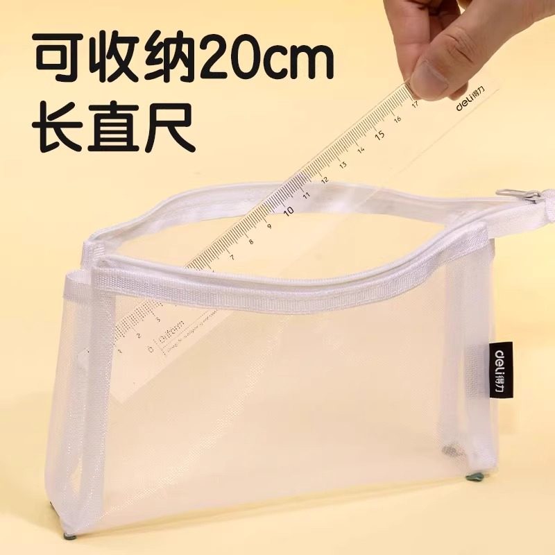 得力透明网纱笔袋考试用简约时尚高颜值学生文具铅笔收纳袋大容量