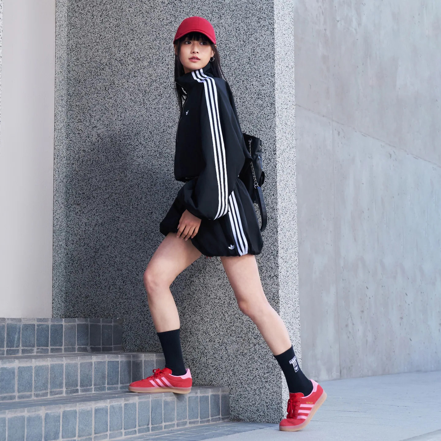 adidas阿迪达斯三叶草漏斗领运动宽松早春薄外套女梭织夹克KY5045