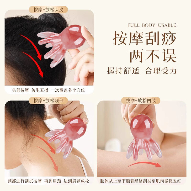 章鱼八爪鱼按摩梳头部按摩器经络疏通神器便携大齿梳面部刮痧五指