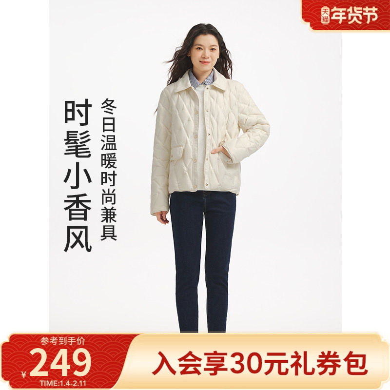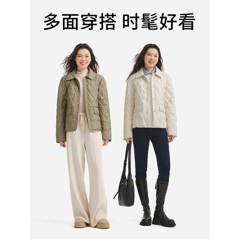 热风轻薄羽绒服女款冬季2025年新款纯色小香风菱形格翻领羽绒外套