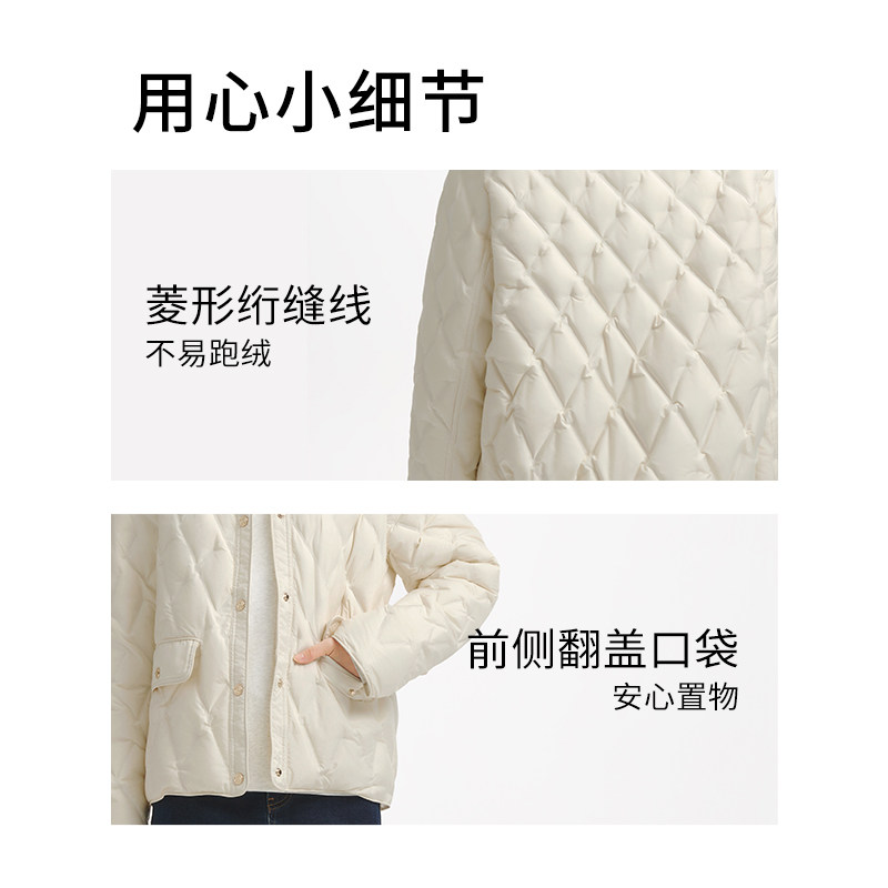 鸭鸭轻薄羽绒服女2025年秋冬反季短款立领修身舒适上衣内胆外套J