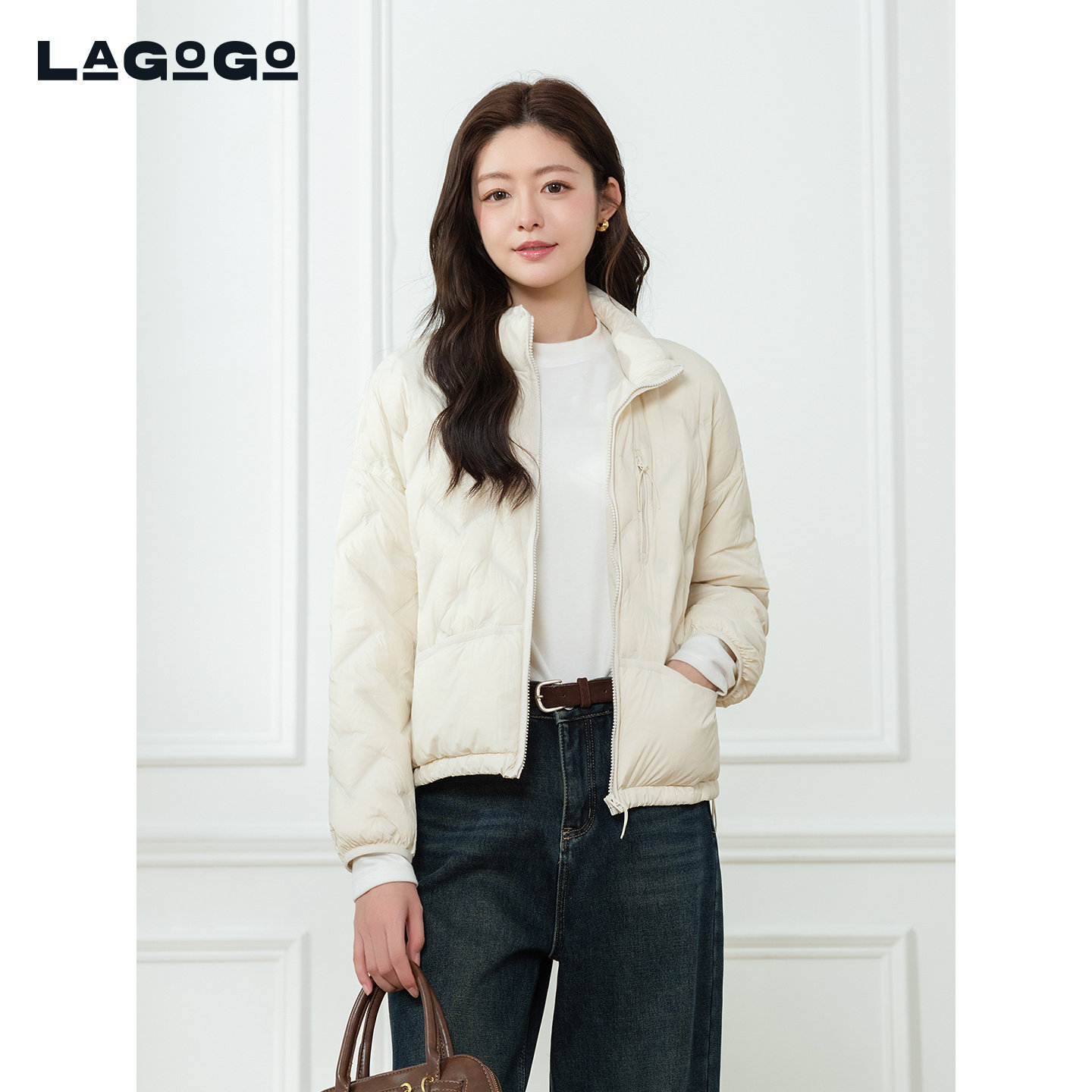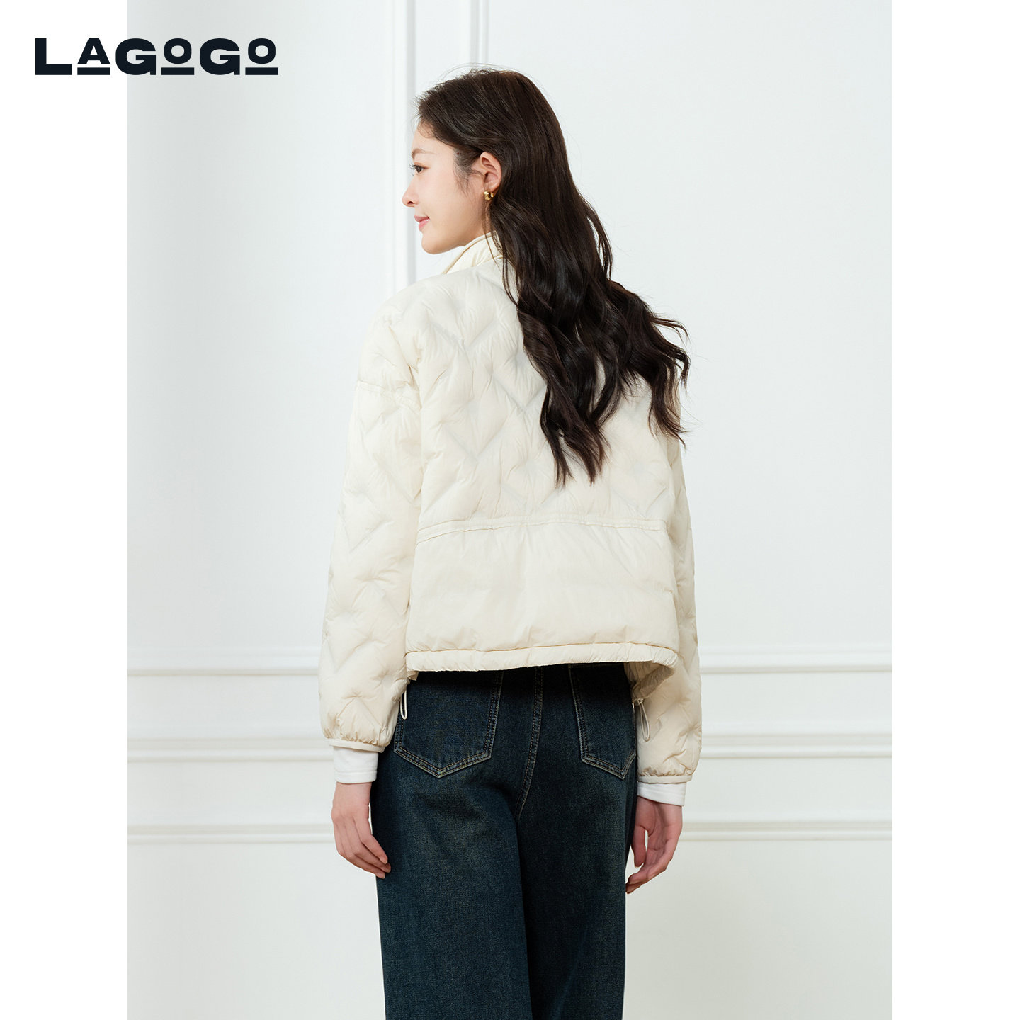 LAGOGO小香风压花优雅轻暖羽绒服女2025冬新款气质外套ODYY23XB55