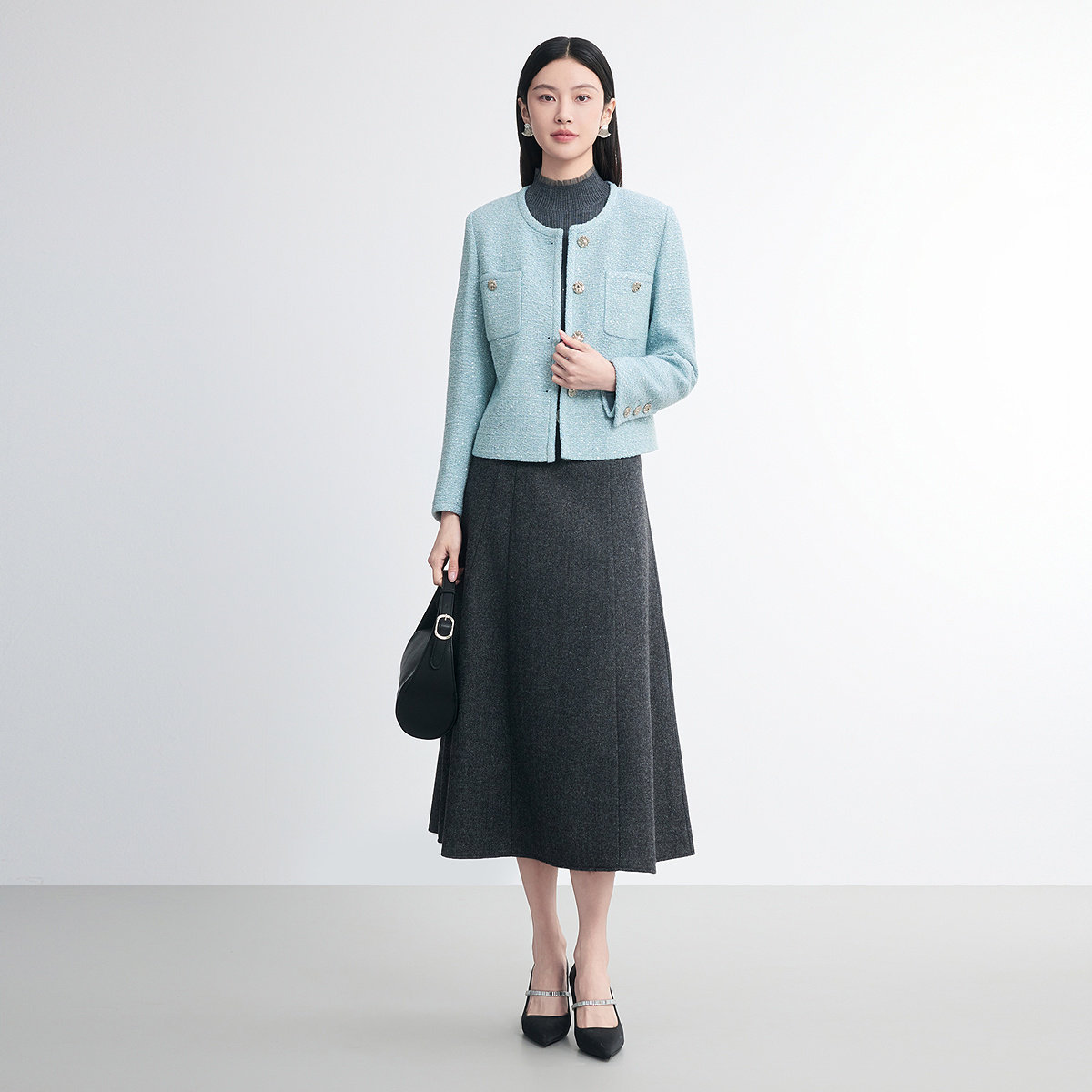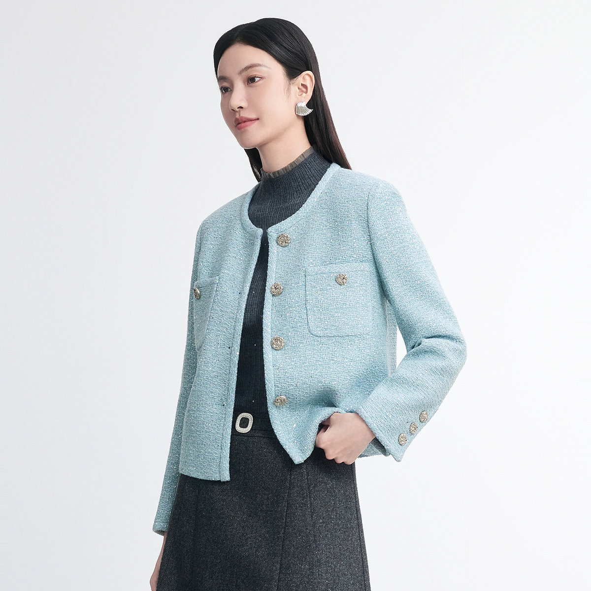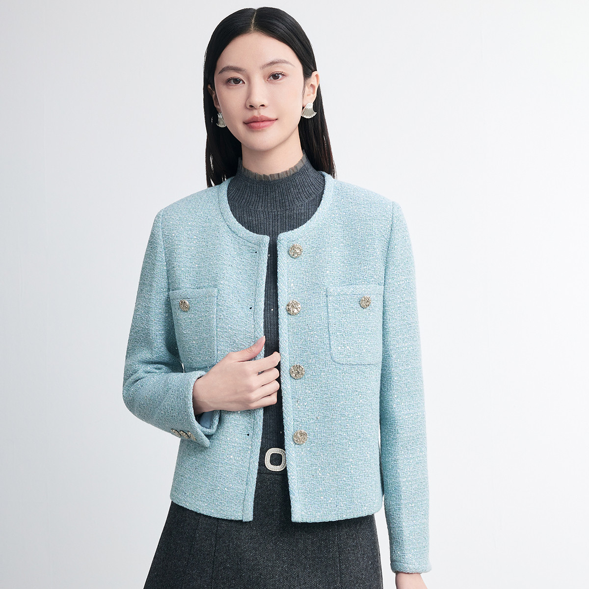FINITY菲妮迪短外套2026春新款浅蓝小香风短款小个子外套上衣女装