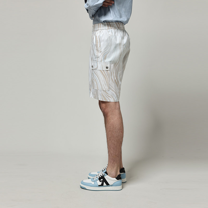 RARE威雅男装 夏季新款潮流版白卡其曲线提花男士工装短裤