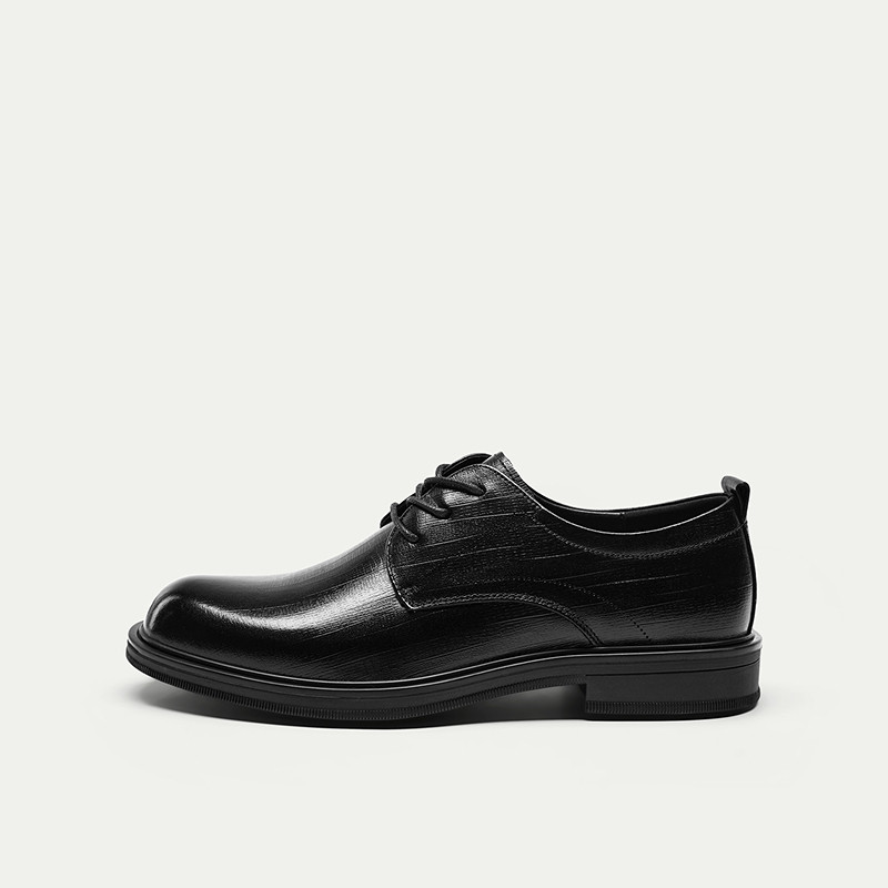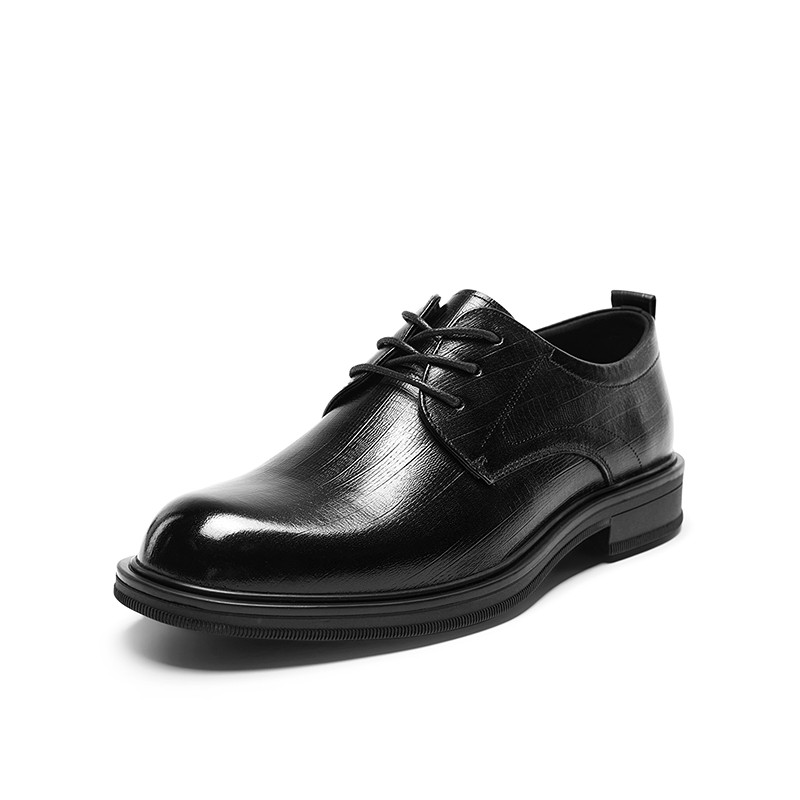 HLA/海澜之家头层牛皮正装皮鞋25新款橡胶鞋底系带商务通勤鞋子男