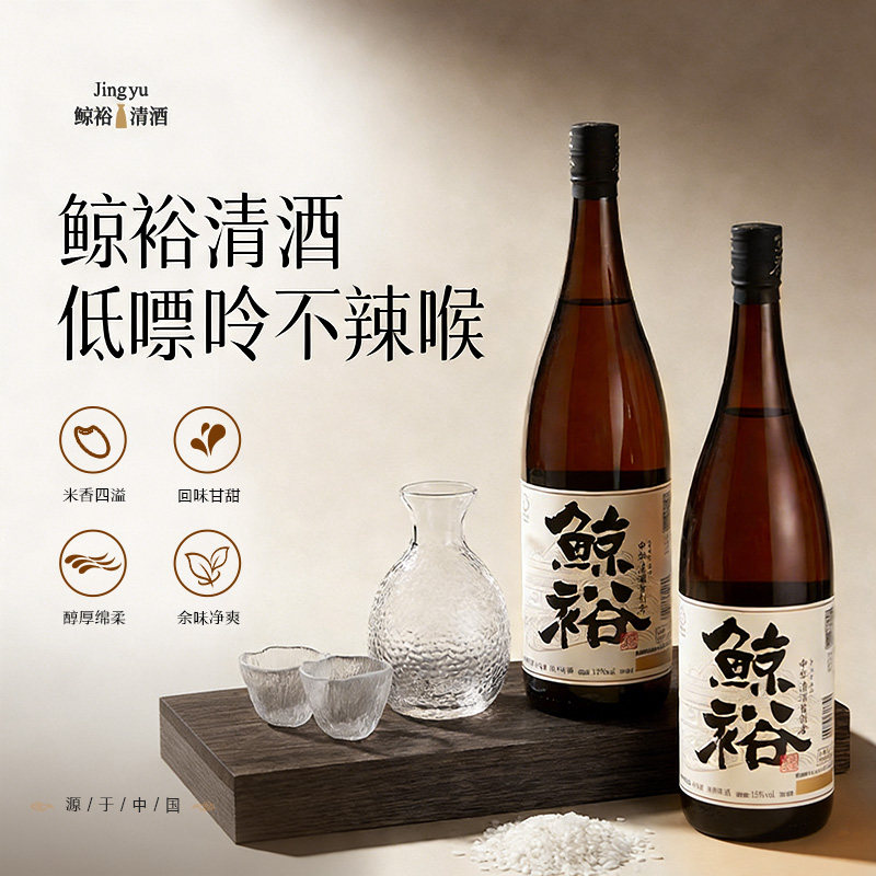 鲸裕清酒1800毫升纯米粮食酿造聚会日料家宴15度约会微醺低度酒