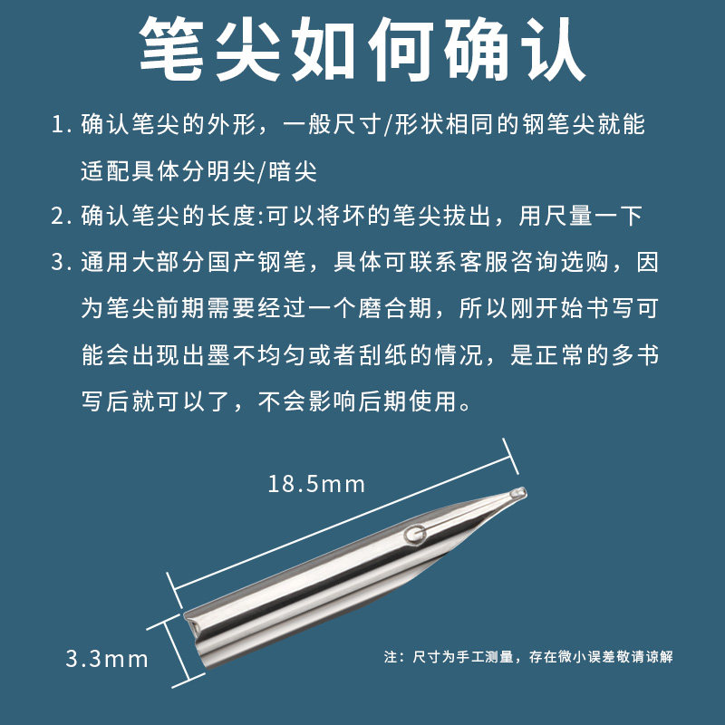 永生暗尖通用型替换笔尖暗尖18.5mm特细0.38弯尖0.7美工替换笔尖10支装送pp盒送钢笔一支