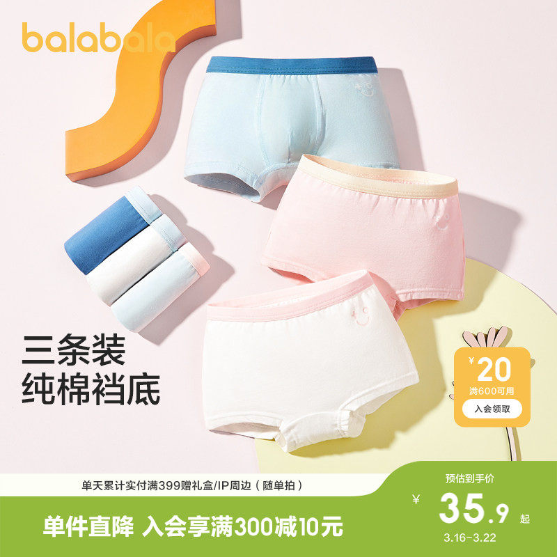 巴拉巴拉男童内裤平角棉中大小童宝宝儿童四角短裤女童三角三条装