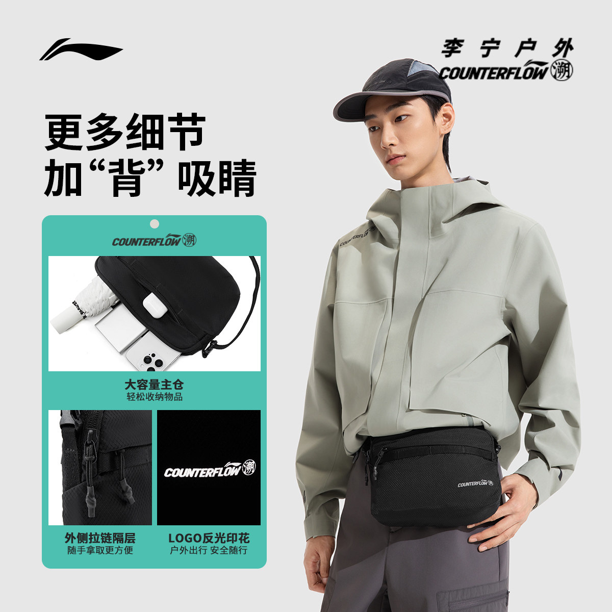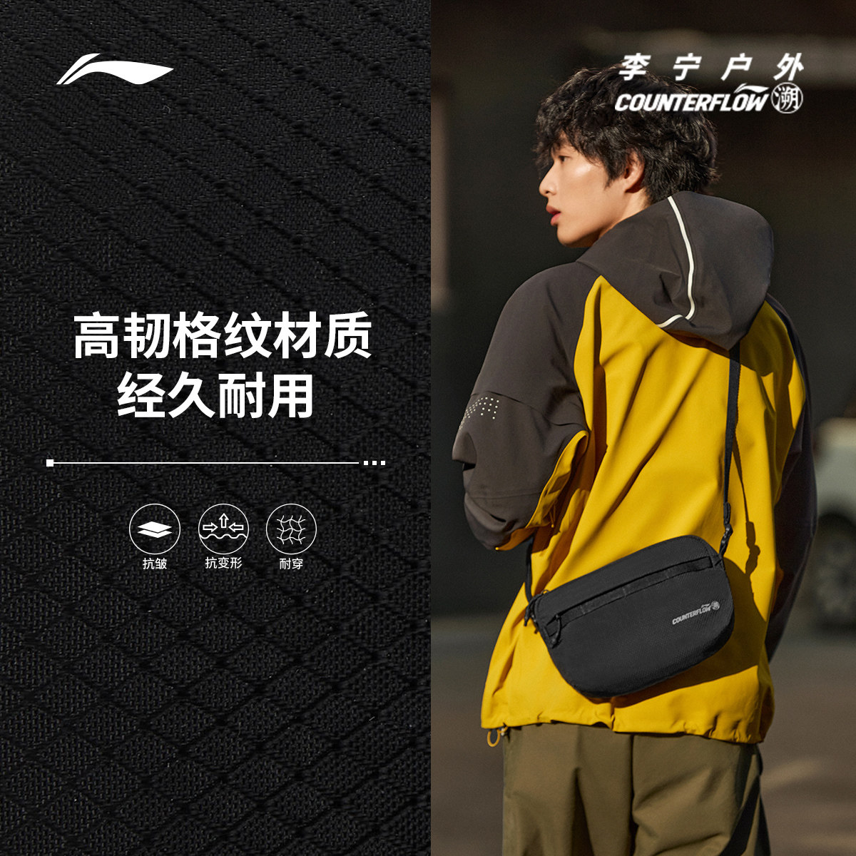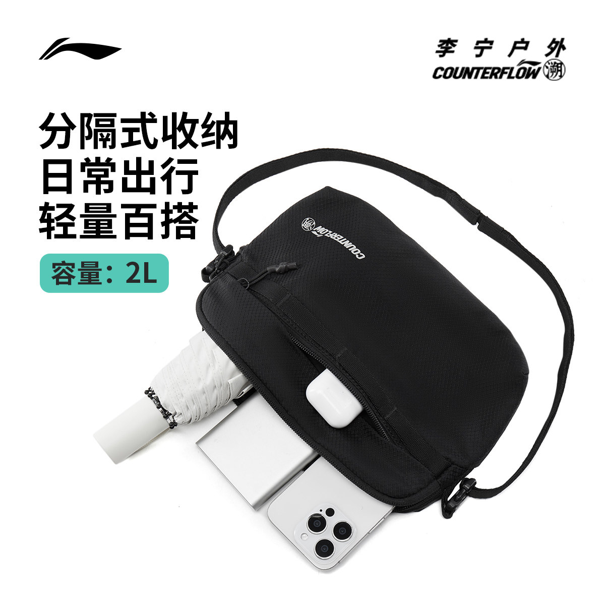 李宁户外CF溯|斜挎包男女官方正品休闲轻便反光运动包