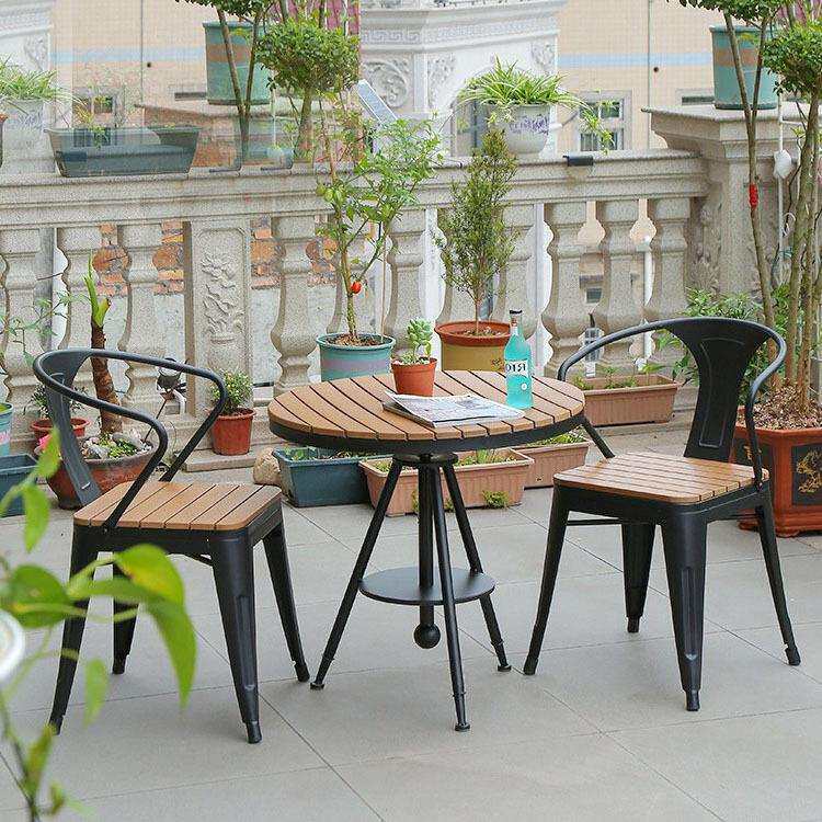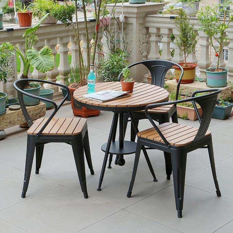 阳台休闲小茶桌庭院塑木圆桌室外防水防晒餐桌椅别墅小院一桌四椅