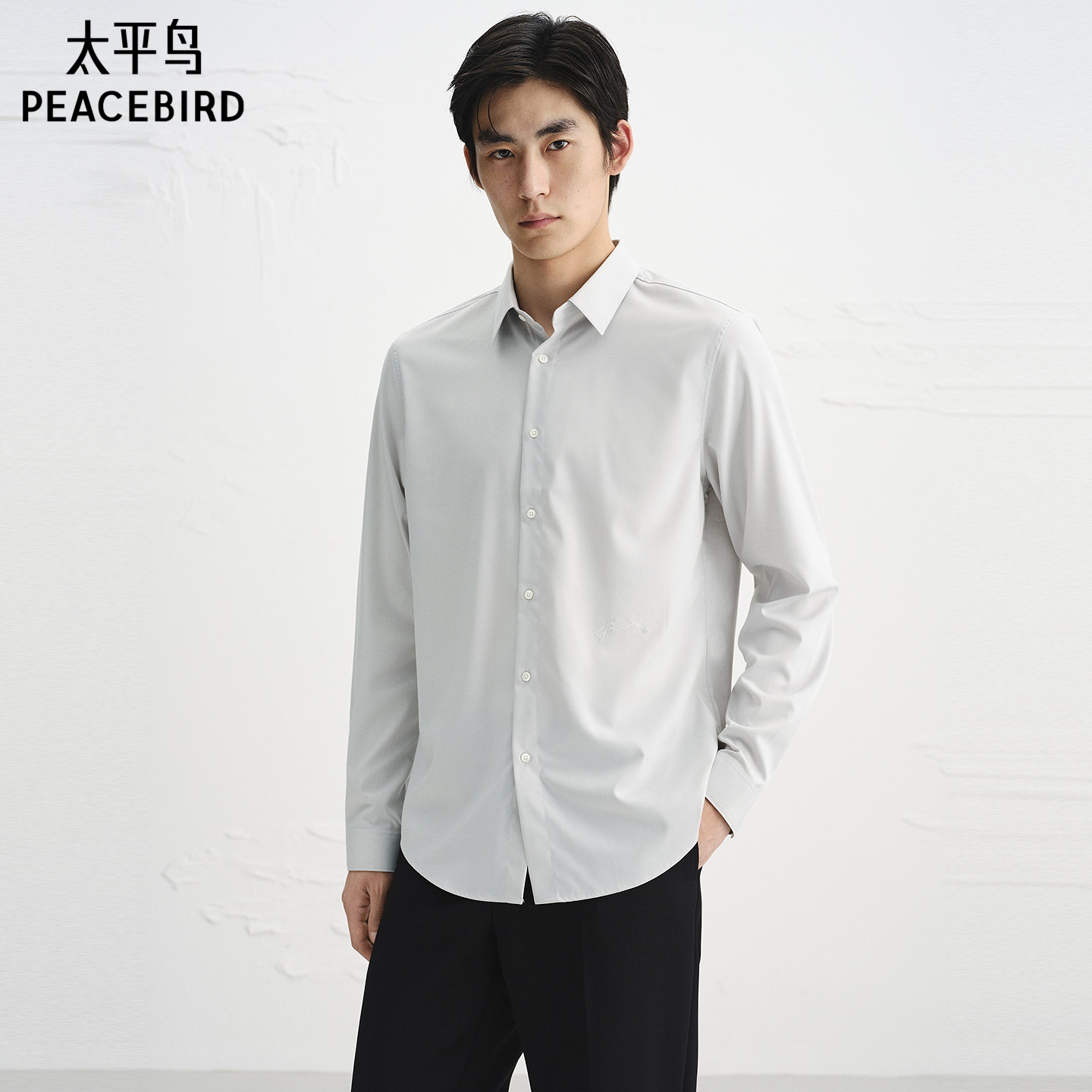 太平鸟男装垂顺莫代尔长袖衬衫字母刺绣舒适时尚内搭翻领衬衣