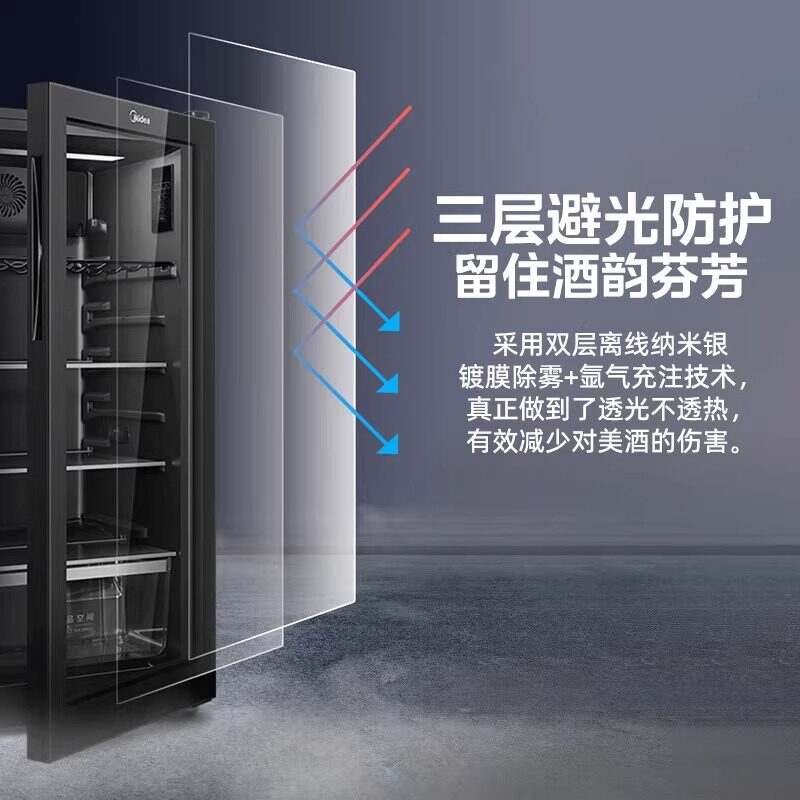 美的冰吧家用饮料冰箱客厅办公室茶叶保鲜柜透明冷藏红酒柜241