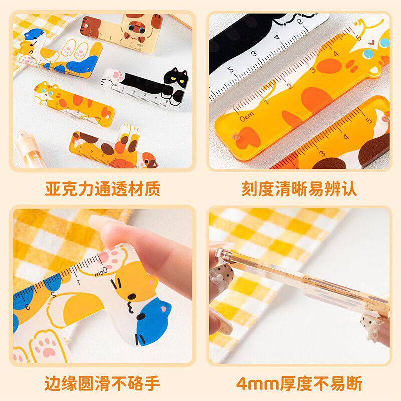 迷你猫咪掌心尺卡通猫咪直尺挂件迷你掌心尺高颜值可爱异性拼图学生学习尺子解压