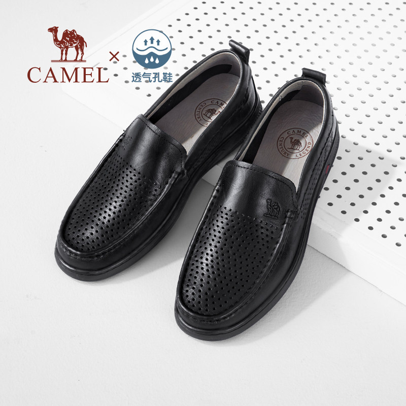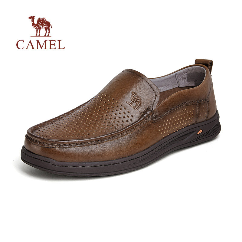 骆驼2026夏季舒适牛皮镂空透气软底休闲商务男士凉鞋皮鞋爸爸鞋