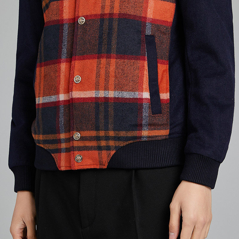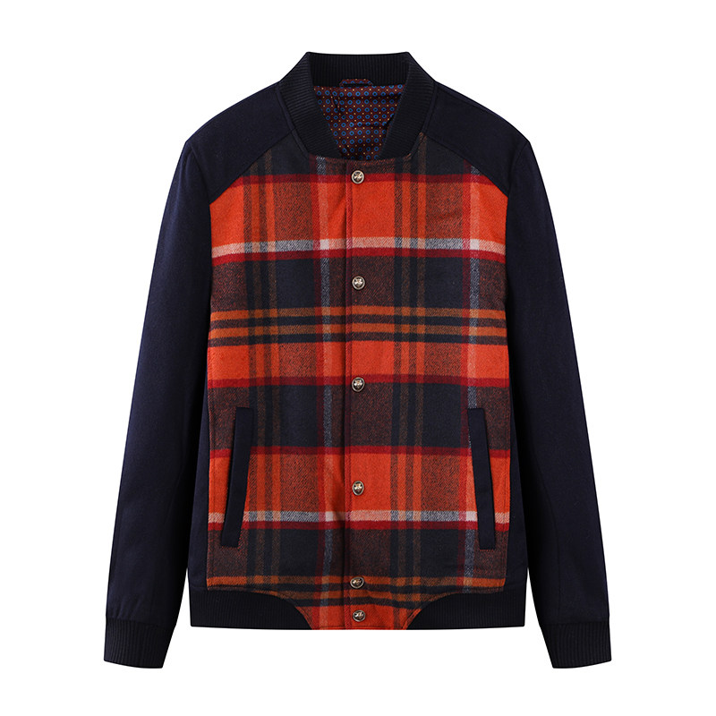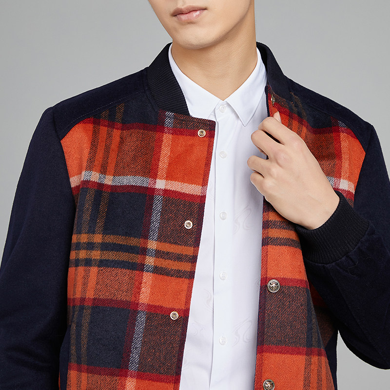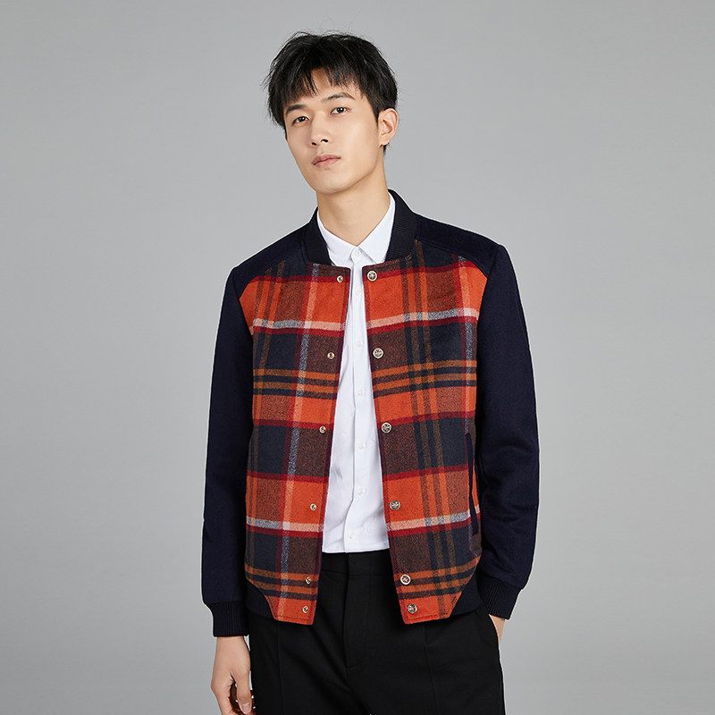 直播福利!撤柜款!大牌撤标男士棒球领修身格子休闲毛呢夹克外套