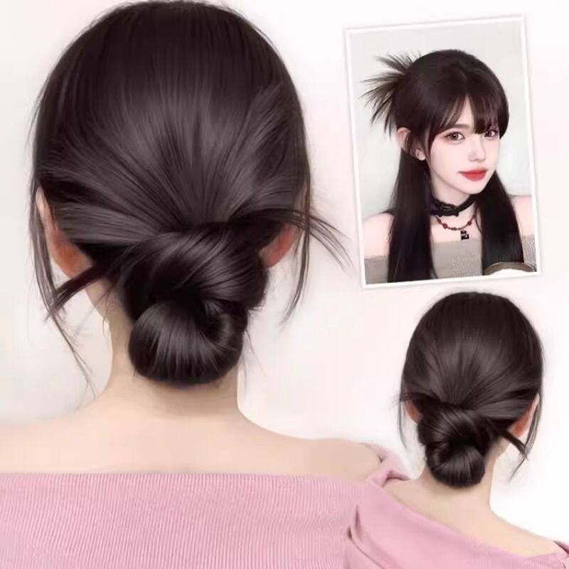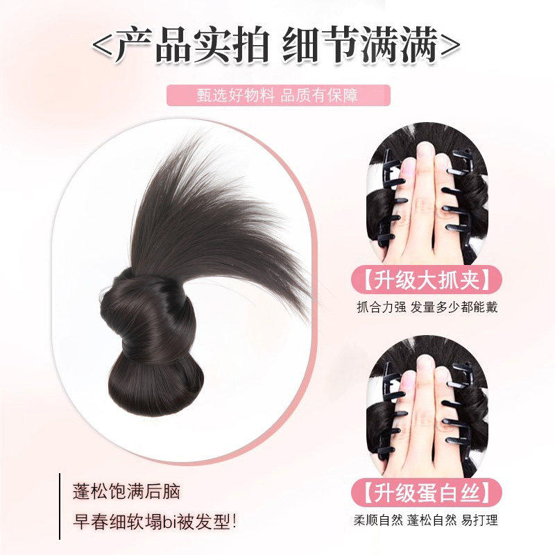 新中式假发低扎丸子头抓夹花苞头盘发神器蓬松后脑勺发包千金