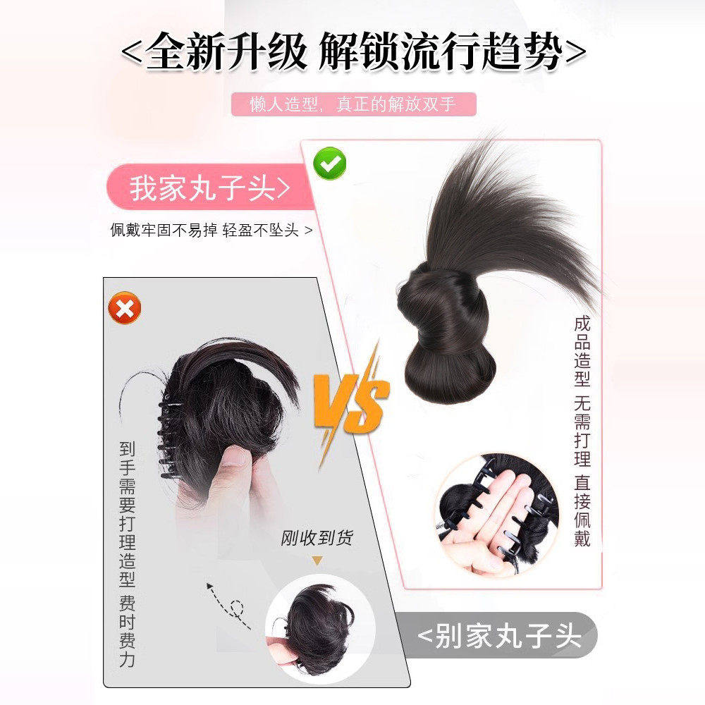 低扎丸子头假发鸡毛头抓夹盘发发包慵懒感造型头饰自然蓬松后脑勺