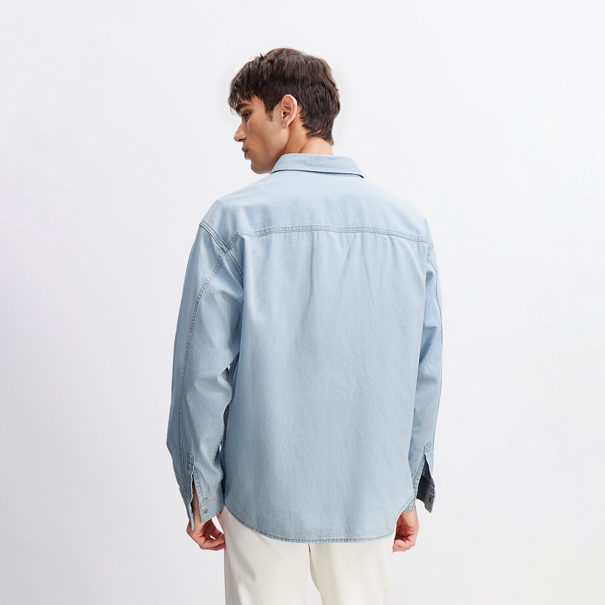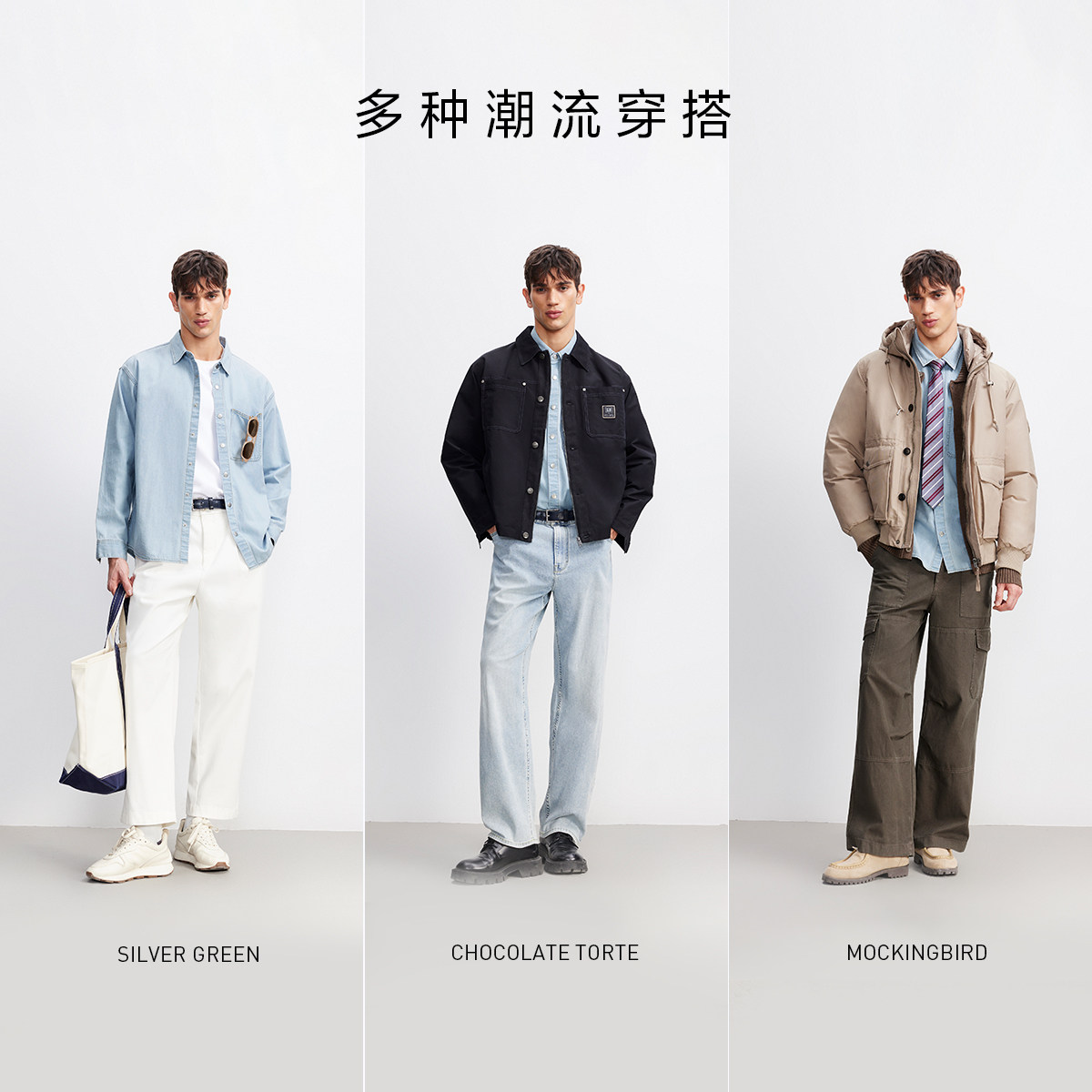 【牛仔衬衫男款】杰克琼斯蓝色长袖衬衣春季中性简约纯棉上衣男装